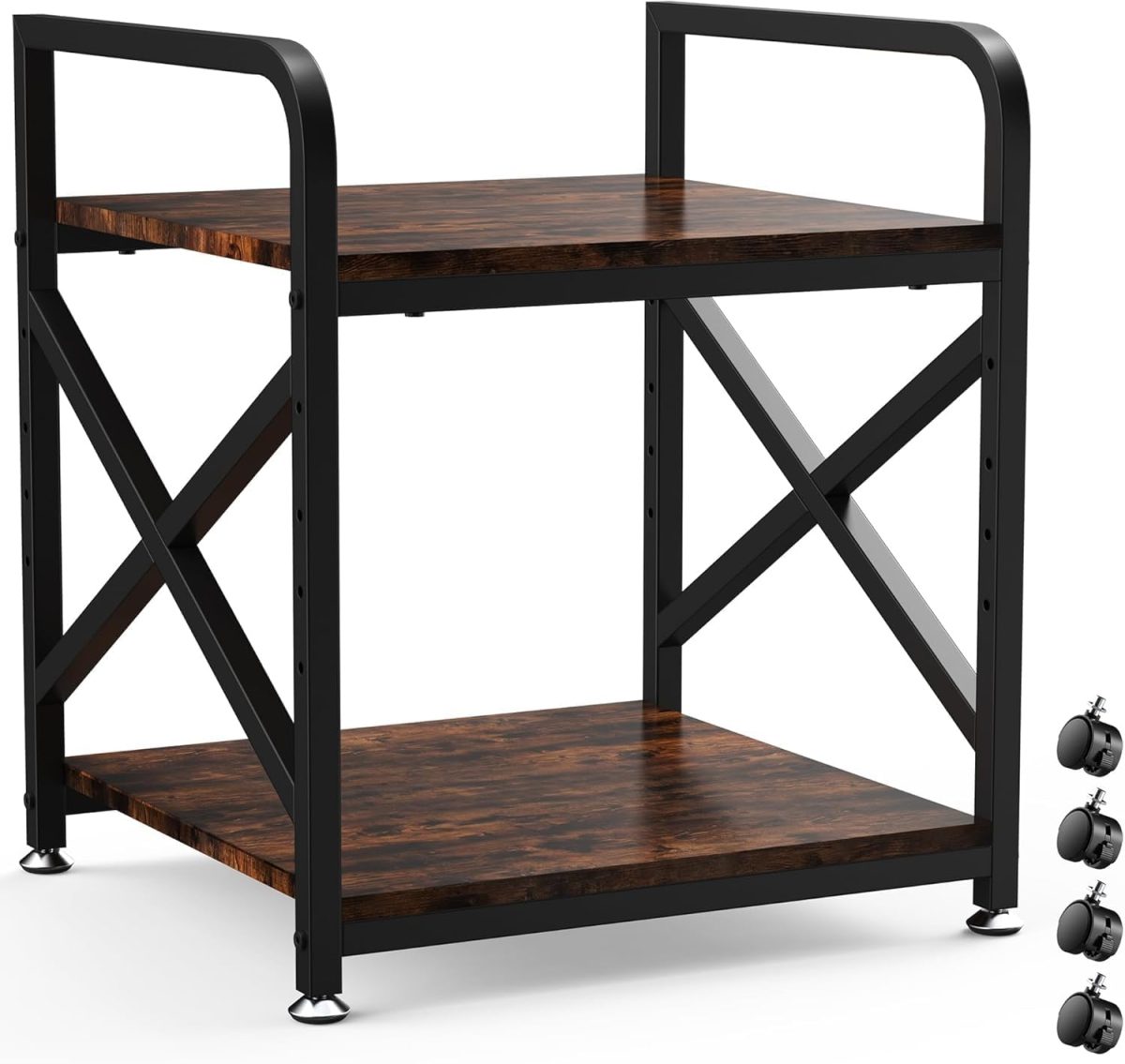 Large Storage Space: With spacious 20″ x 20″ square shelves that can hold up to 100 lb on each tier, the two-tier storage design provides ample space for printers, scanners, fax machines as well as documents, books, printer paper, ink cartridges and other office supplies. It’s definitely more than just a 3D printer cart. It’s also an coffee table, sofa end table, plant stand rack, living room storage rack, nightstand, microwave stand, fish tank stand or a mini fridge stand
