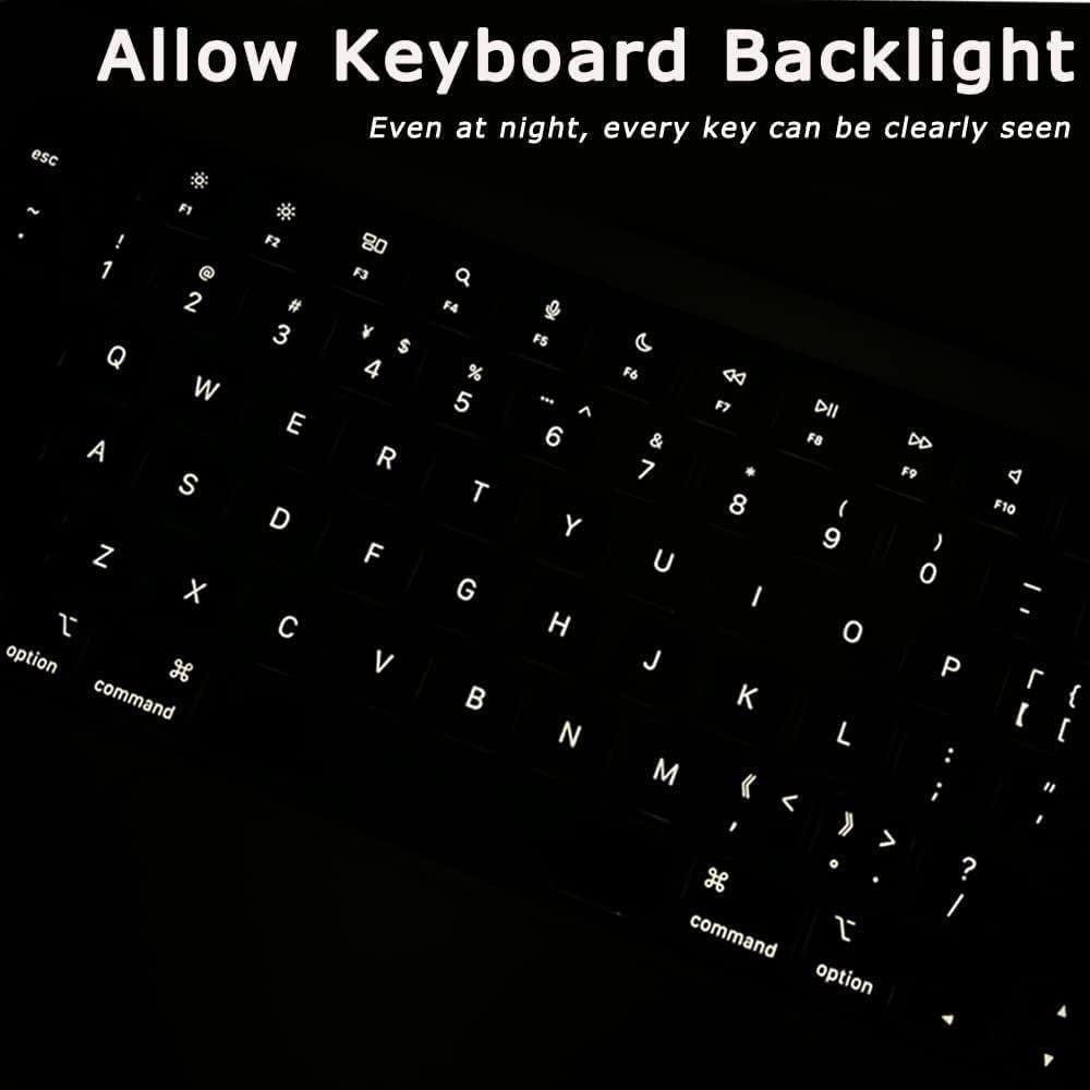 ✔️Customized to precisely fit for your keyboard and allow free access to Touch ID; Each parcel has a sticker that you can optionally stick the TPU keyboard cover to your keyboard to preventing the skin from moving around. Whem removing the sticker, do it slightly and no sticker will be left after removal