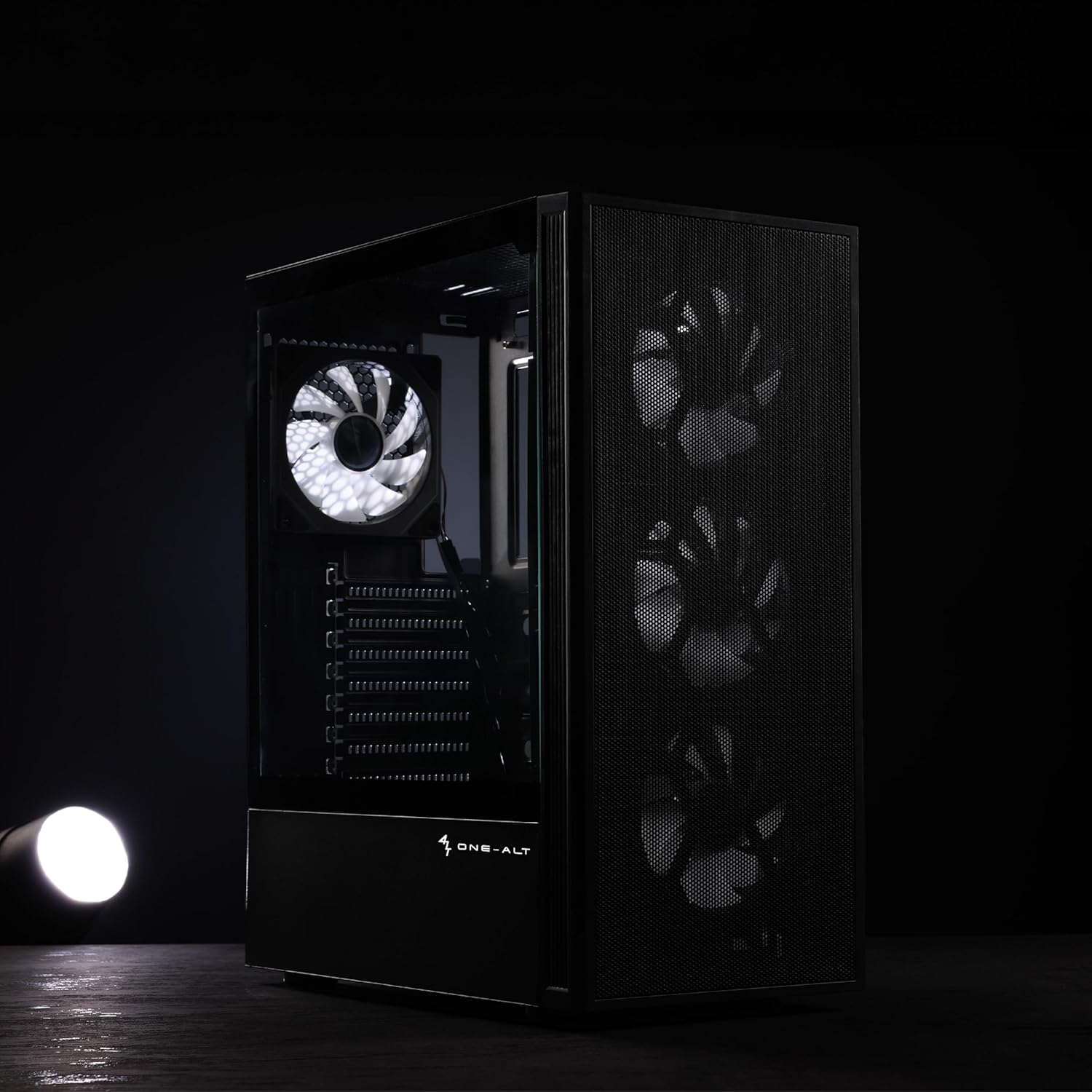 A-PRIORI’s iron-mesh front and four ARGB Infinity Mirror fans create a direct, unobstructed airflow path for efficient cooling.