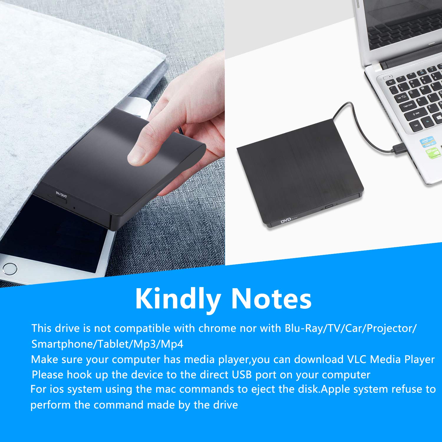 Warm Tips: The external DVD drive does not support tv / car / blu ray / projector / tablet / smartphone / Chrome and Ubuntu systems.