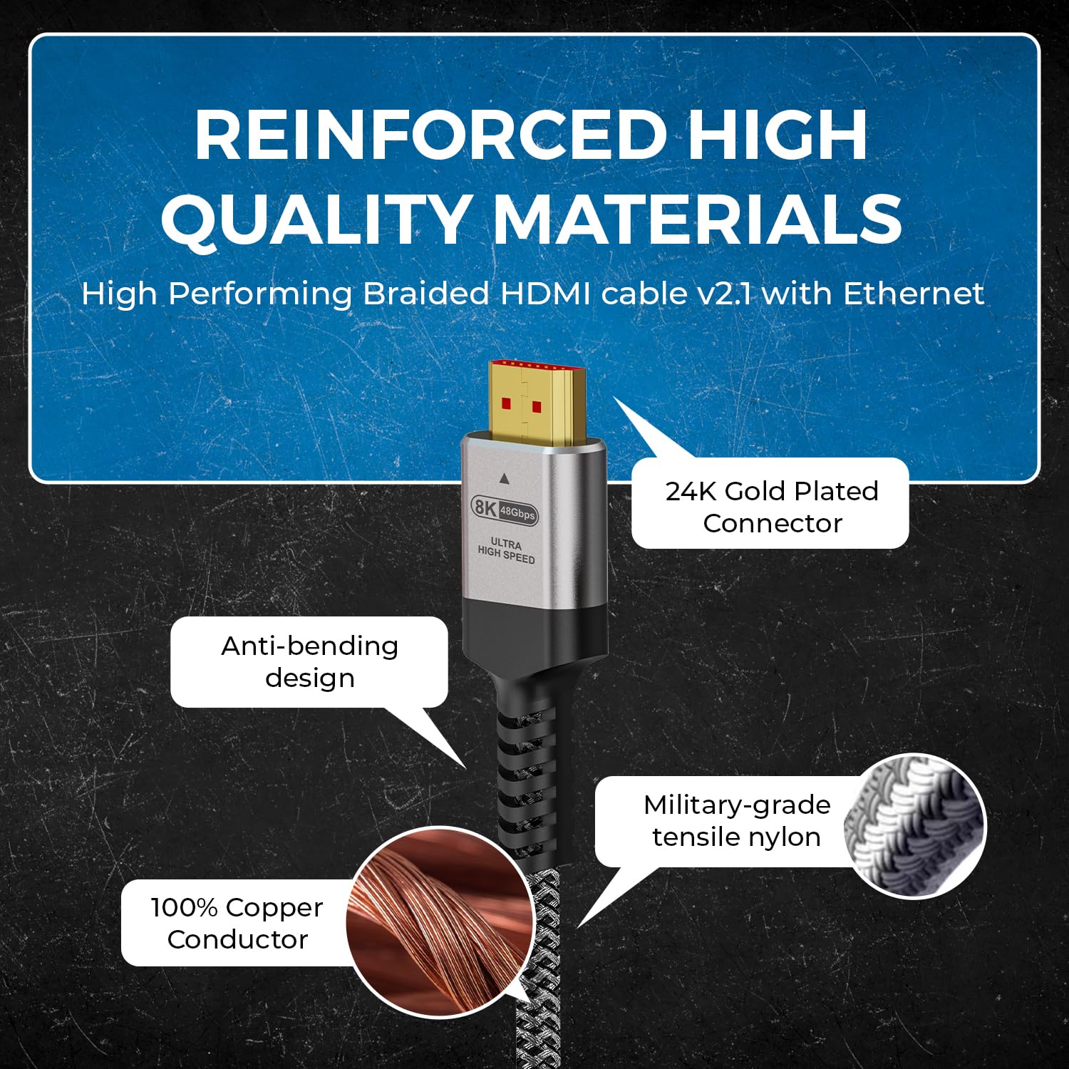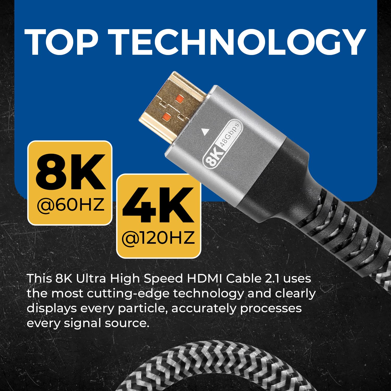 8K Ultra HD with High Bandwidth: These HDMI 2.1 cables support resolutions up to 8K@60Hz and 4K@120Hz, with a 48Gbps bandwidth. HDMI 2.1 and HDCP 2.3 compliant, they ensure ultra-high-definition video and audio transmission, ideal for 8K and 4K UHD TVs, monitors, and gaming consoles. Gold-plated HDMI to HDMI connectors.