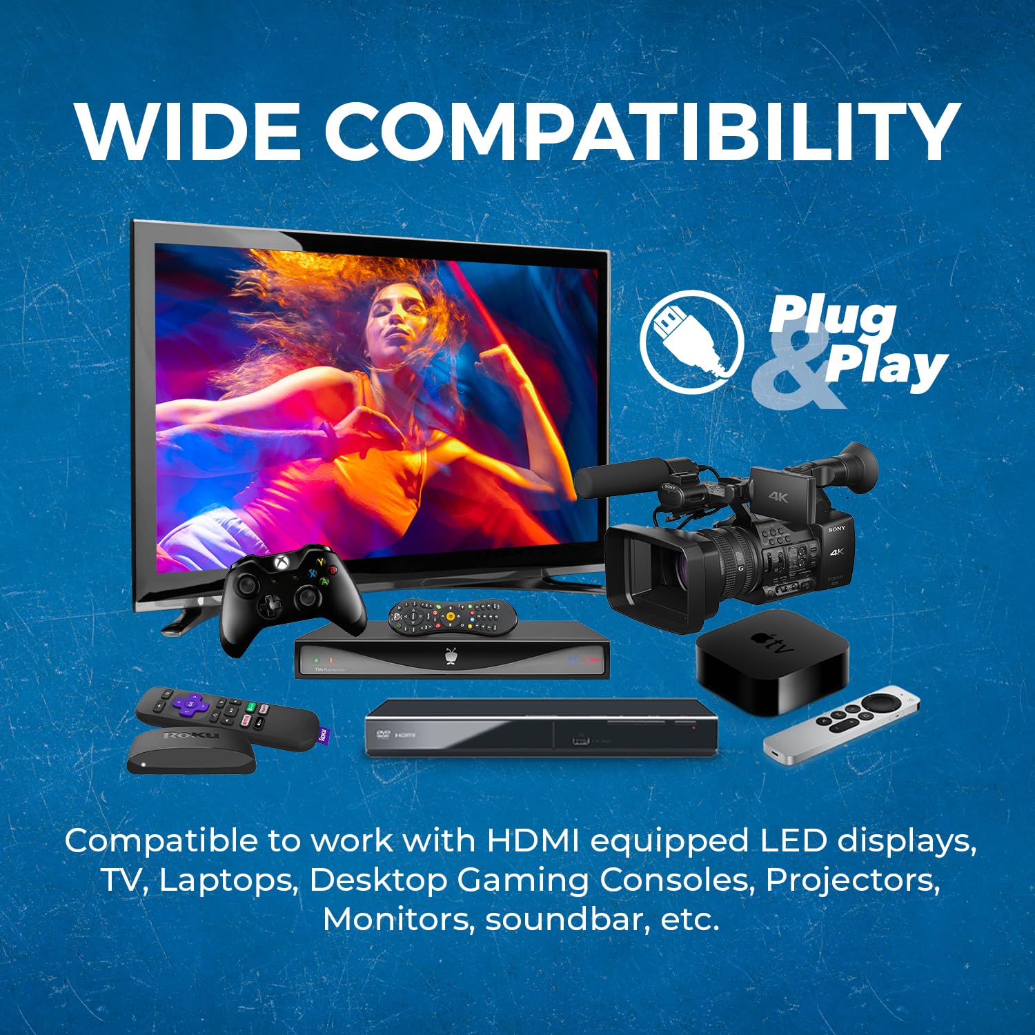 Durable, Reliable Construction with Universal Compatibility: These braided HDMI cords are built for long-lasting performance and durability. Compatible with all HDMI-enabled devices, including Blu-ray players, gaming consoles, streaming devices, and more. These HDMI cables are easy to install, providing hassle-free, plug-and-play simplicity.