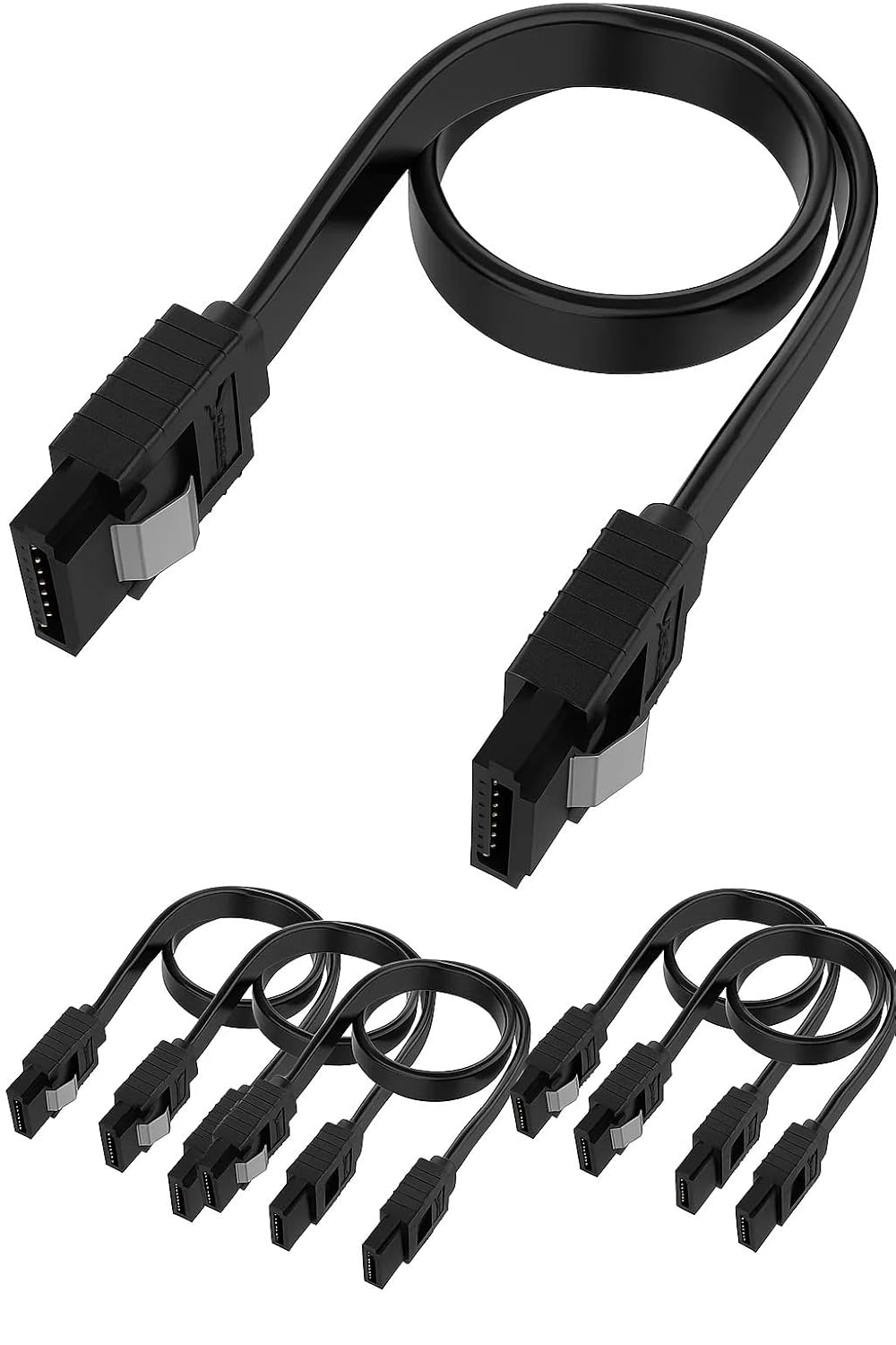 SEEMECX high speed SATA III internal data cable allows fast and stable data transfer between storage devices and the motherboard. Built with a flat flexible cord, it helps in easy cable management and enhances airflow within the computer case. The cable supports up to 6Gbps transfer rate, making it compatible with modern SSDs and HDDs, while also supporting older SATA devices. A metal lock clip secures the connection firmly for uninterrupted operation. This cable is designed for everyday computing, custom PC builds, and system upgrades that require dependable internal connectivity.