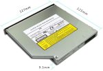 Specifications – 12.7mm Internal SATA Tray Loading DVDRW Drives ; Dimension: 127 x 125 x 9.5mm ; Read Speed: 24x CD, 8x DVD / Write Speed: 24x CD, 8x DVD