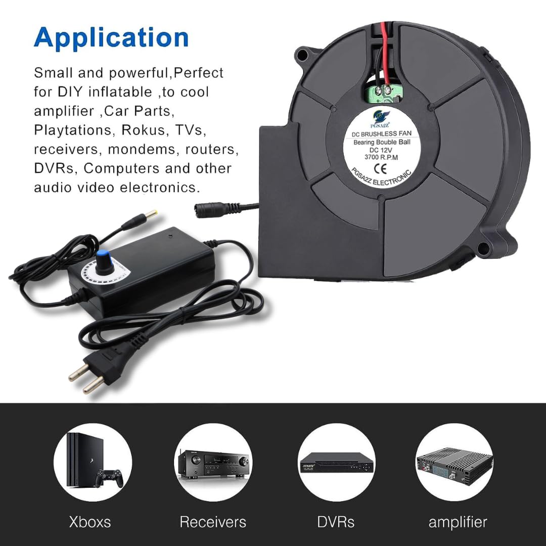 Compact and Powerful Blower Fan: Experience the perfect blend of size and power with our small blower fan. Whether it’s for DIY inflatables, cooling amplifiers, car parts, PlayStations, Rokus, TVs, receivers, modems, routers, DVRs, computers, or incubators, this fan delivers exceptional performance.