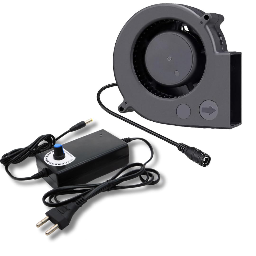 PGSA2Z 12V Blower Fan with Dual Ball Bearings – High Airflow, Variable Speed Controller – 97 x 33 mm – 110V/220V AC Plug – Cooling, and Ventilation Exhaust Projects