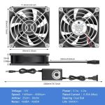 PGSA2Z 80mm Dual Ball Bearing Cooling Fan with Speed Controller, 12V DC Adjustable Quiet Fan for PC Case, Router, Cabinet, Modem, Reptile Tank and Electronics Cooling
