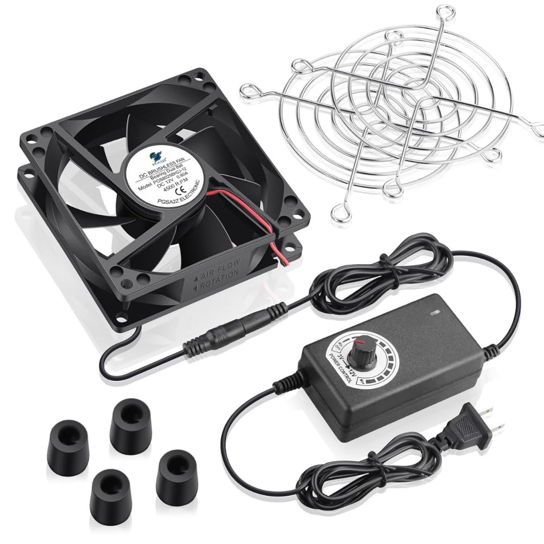 Complete Kit Included: Comes with fan guard, 4 rubber mounts, and power adapter with adjustable knob for plug-and-play setup.