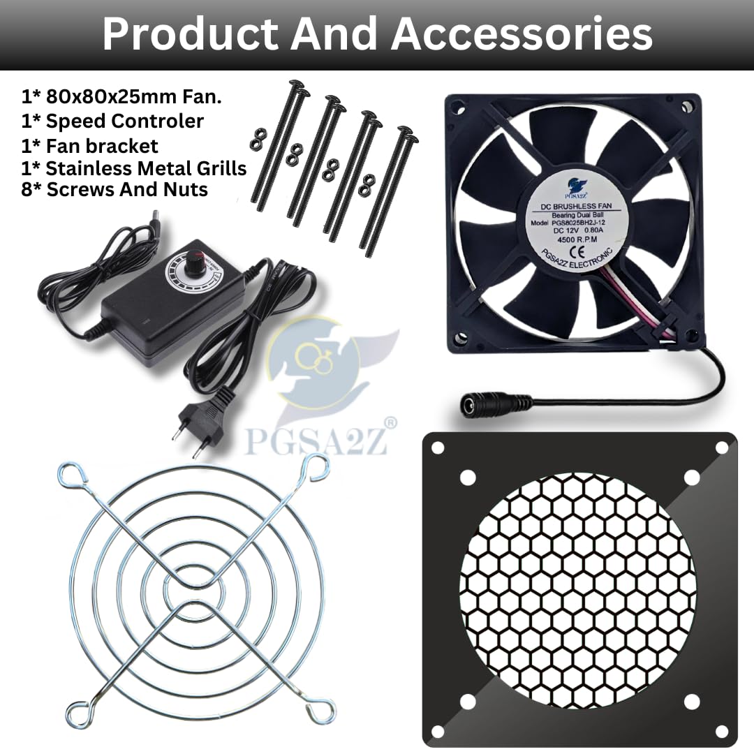 PGSA2Z Enhanced Cooling Solution: 80mm AC Plug Fan (120V/110V/220V) with Adjustable Speed Controller for PC, Doorway, Receiver, Xbox, DVR, Router, Home Theater, AV Cabinets – Quiet Cooling Fan System