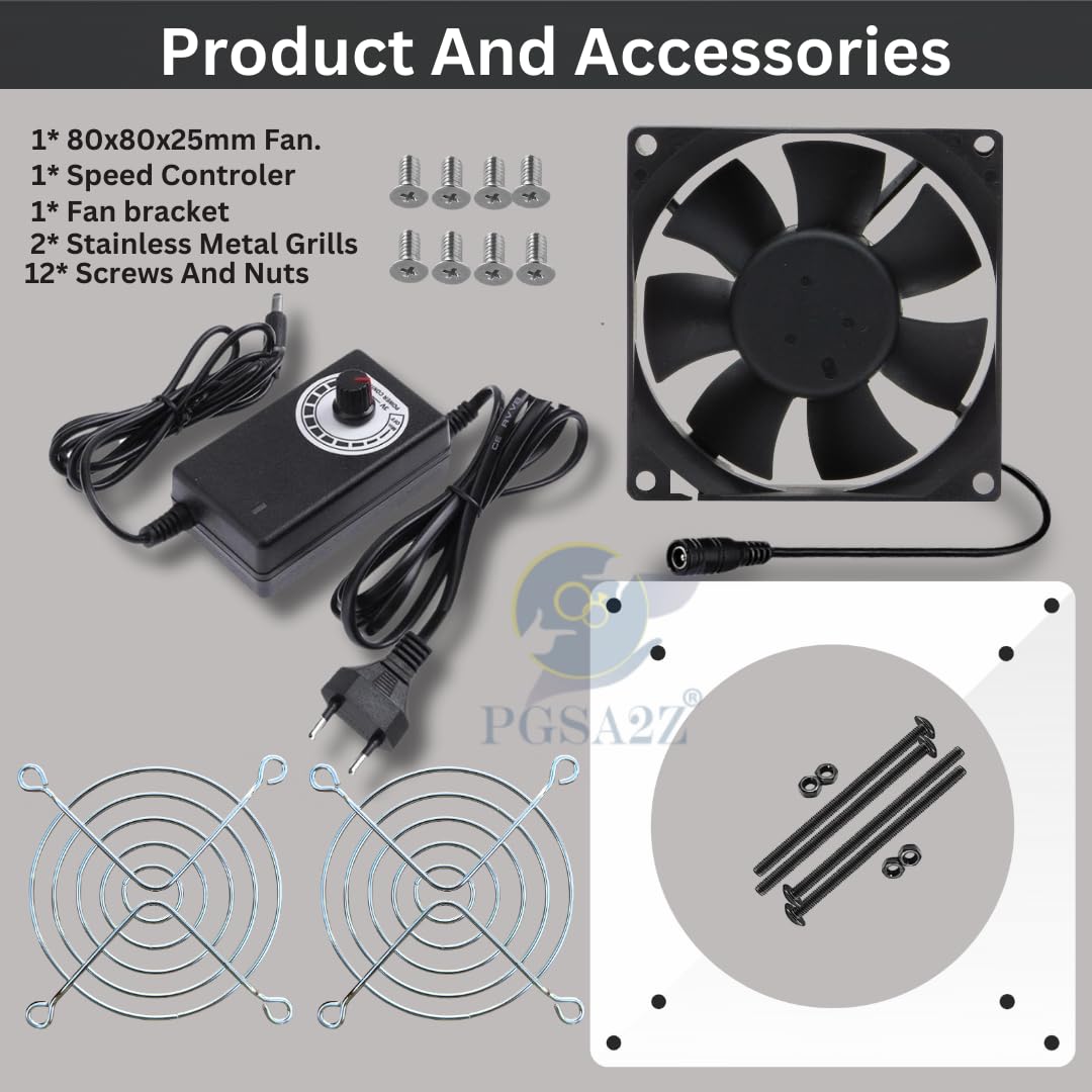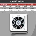 Efficient Cooling: Keep your PC, doorway receiver, Xbox, DVR, router, home theater, and AV cabinets running smoothly with our AC Plug Cooling Fan System. Versatile Compatibility: Designed to work seamlessly with 120V, 110V, and 220V power sources, ensuring compatibility across various setups. Customizable Cooling: Adjust the fan speed effortlessly with the variable speed controller, allowing you to tailor the cooling performance to your specific needs. Enhanced Airflow: The 80mm fan delivers optimal airflow, effectively dissipating heat and maintaining ideal operating temperatures for your devices. Easy Installation: Simple to install in any compatible system or cabinet, ensuring hassle-free setup and operation. Reliable Performance: Trust in the durability and performance of our cooling fan system to protect your electronic devices from overheating and extend their lifespan.