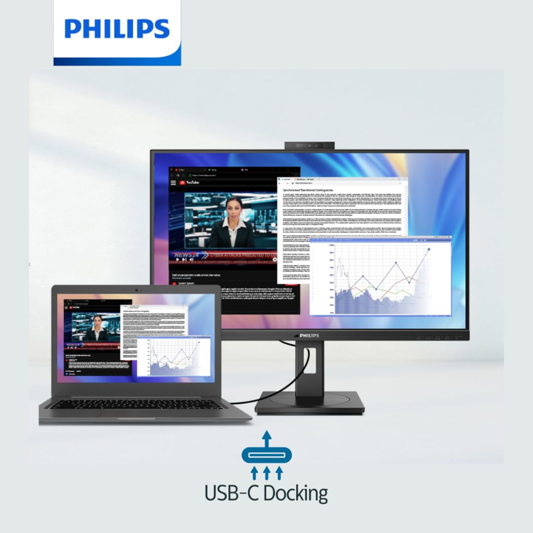 PHILIPS 27B1U5601H/94 27″ QHD Business Monitor | USB-C Docking | Pop-up Webcam | 75Hz | KVM Switch | PowerSensor | 5000 Series