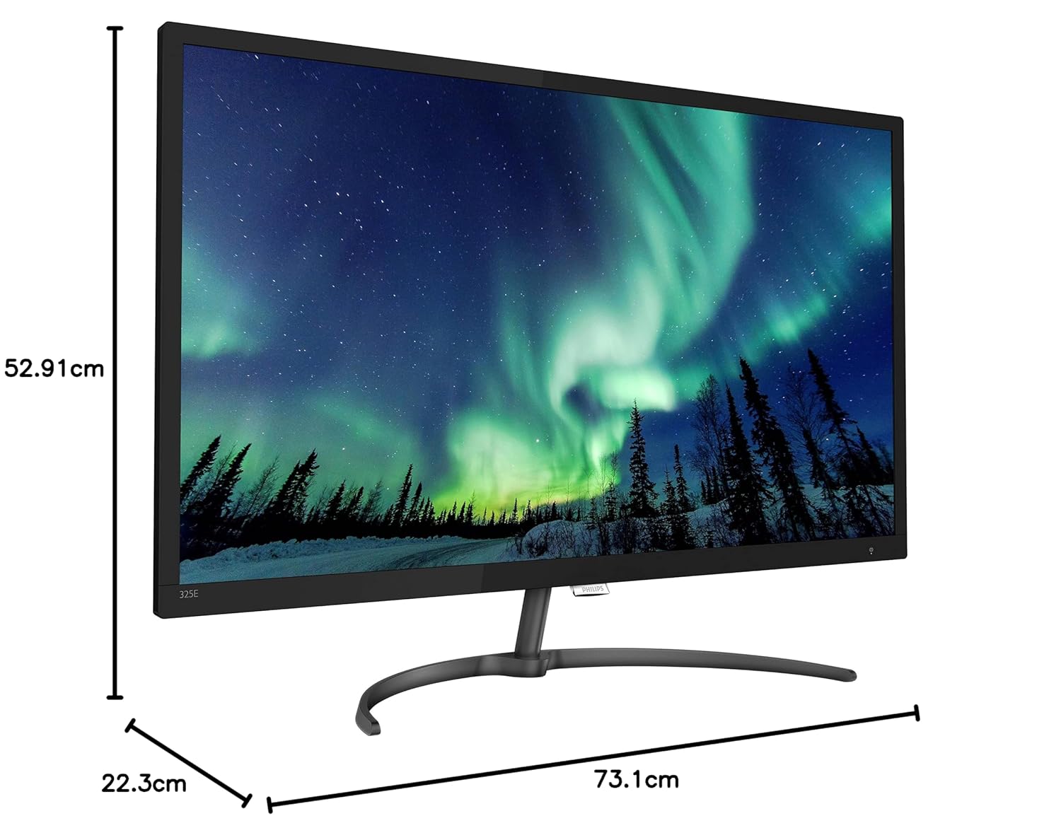 31.5 inch Quad HD IPS Display: Experience stunning visuals with a 2560 x 1440 resolution on a 31.5-inch IPS panel, delivering vibrant colors and wide viewing angles. The 178° horizontal and vertical viewing angles ensure consistent image quality from any position, making it ideal for collaborative work and immersive gaming sessions Seamless Gameplay with AMD Free Sync: Enjoy smooth and fluid gaming experiences with AMD Free Sync technology, which synchronizes the monitor’s refresh rate with your GPU to eliminate screen tearing and stuttering. Coupled with a 5ms response time, this monitor ensures responsive and lag-free performance, enhancing your gaming and multimedia activities Eye-Care Features for Extended Use: Designed with your comfort in mind, the PHILIPS 325E8/94 monitor incorporates Flicker-Free technology and Low Blue Mode to reduce eye strain during prolonged use. The anti-glare, 3H, 25% haze matte screen further minimizes reflections, providing a comfortable viewing experience even in brightly lit environments Vivid Color Reproduction with Over a Billion Shades: Enjoy ultra-realistic visuals with an expanded color spectrum supporting 1.07 billion shades. This delivers precise color reproduction, making it perfect not just for gaming, but also for content creation, streaming, and visual design tasks where detail and accuracy matter 5.Multi-Device Compatibility with Modern Ports: Easily connect to your favorite gaming consoles, PCs, and multimedia devices using multiple input options including HDMI and DisplayPort. This flexibility ensures high-definition video and audio output, giving you a seamless plug-and-play experience across work and play