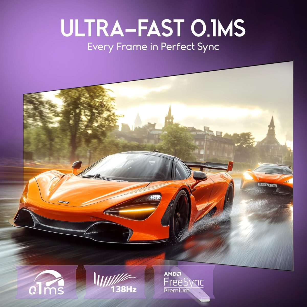 Ultra-Fast 0.1ms Response Time & 138Hz Refresh Rate: Enjoy ultra-responsive gameplay with nearly instantaneous image transitions and a smooth, tear-free experience with AMD FreeSync Premium