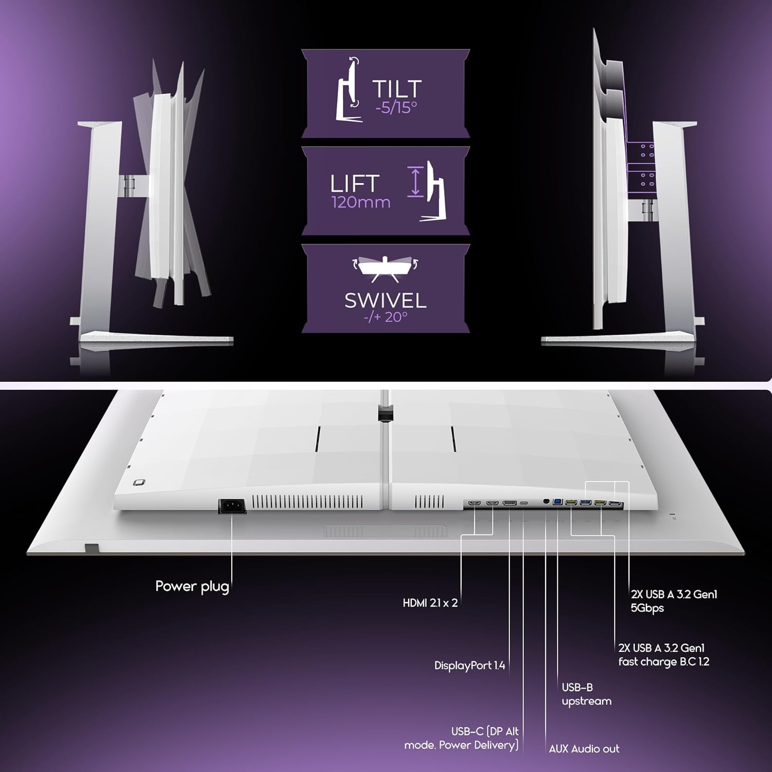 Extensive Connectivity & USB-C: Connect your notebook or gaming devices with HDMI 2.1, DisplayPort 1.4, and USB-C for flexible, high-speed connections and a clutter-free setup