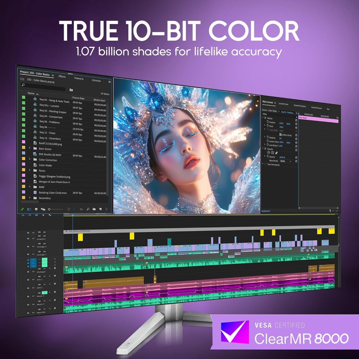 Vivid Colors with True 10-bit Display: Reproduce 1.07 billion colors and an ultra-wide color gamut (DCI-P3 98.5%) for a rich, accurate picture that enhances every detail