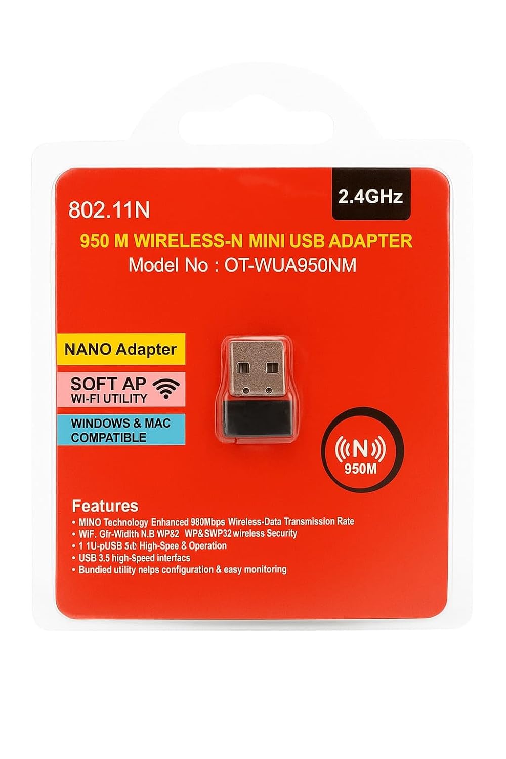 Upgrade your internet experience with the 2.4GHz 950Mbps Wireless-N Mini USB WiFi Adapter – a compact, high-speed, and easy-to-use solution for all your wireless connectivity needs. Whether you’re streaming HD videos, playing online games, or just browsing, this mini USB adapter ensures a stable and fast wireless connection on any device without built-in WiFi.📶 Wireless Frequency: 2.4GHz 🚀 Speed: Up to 950Mbps – Ideal for smooth HD streaming and lag-free gaming 🔌 Plug & Play: No CD or driver required for most systems – just plug in and connect 💻 Universal Compatibility: Works with Windows (XP/7/8/10/11), Linux, and macOS 🛡️ Secure Connection: Supports WEP, WPA, WPA2 encryption for safe browsing 🖥️ Perfect for Desktops & Laptops: Add WiFi functionality instantly to older PCs 📏 Mini & Portable Design: Compact size makes it travel-friendly and unobtrusive