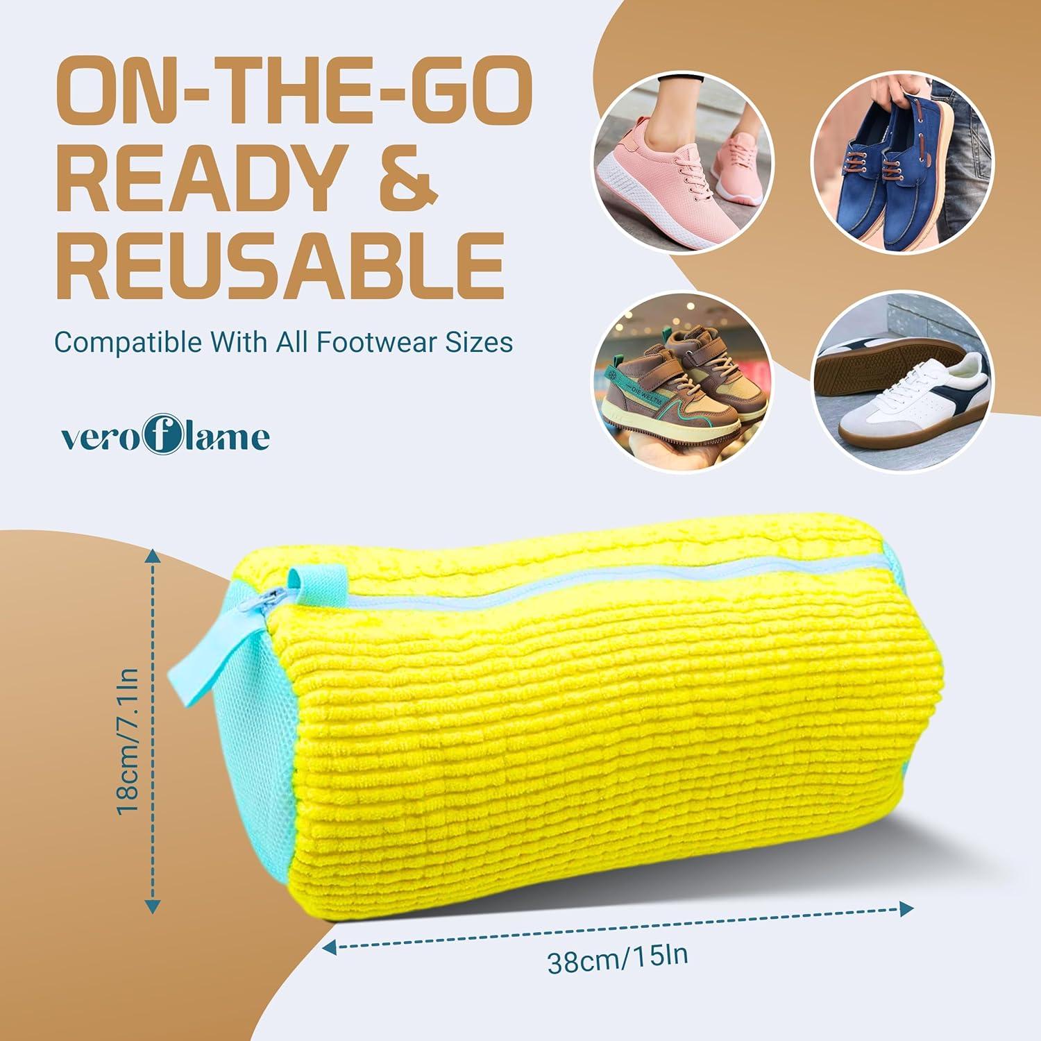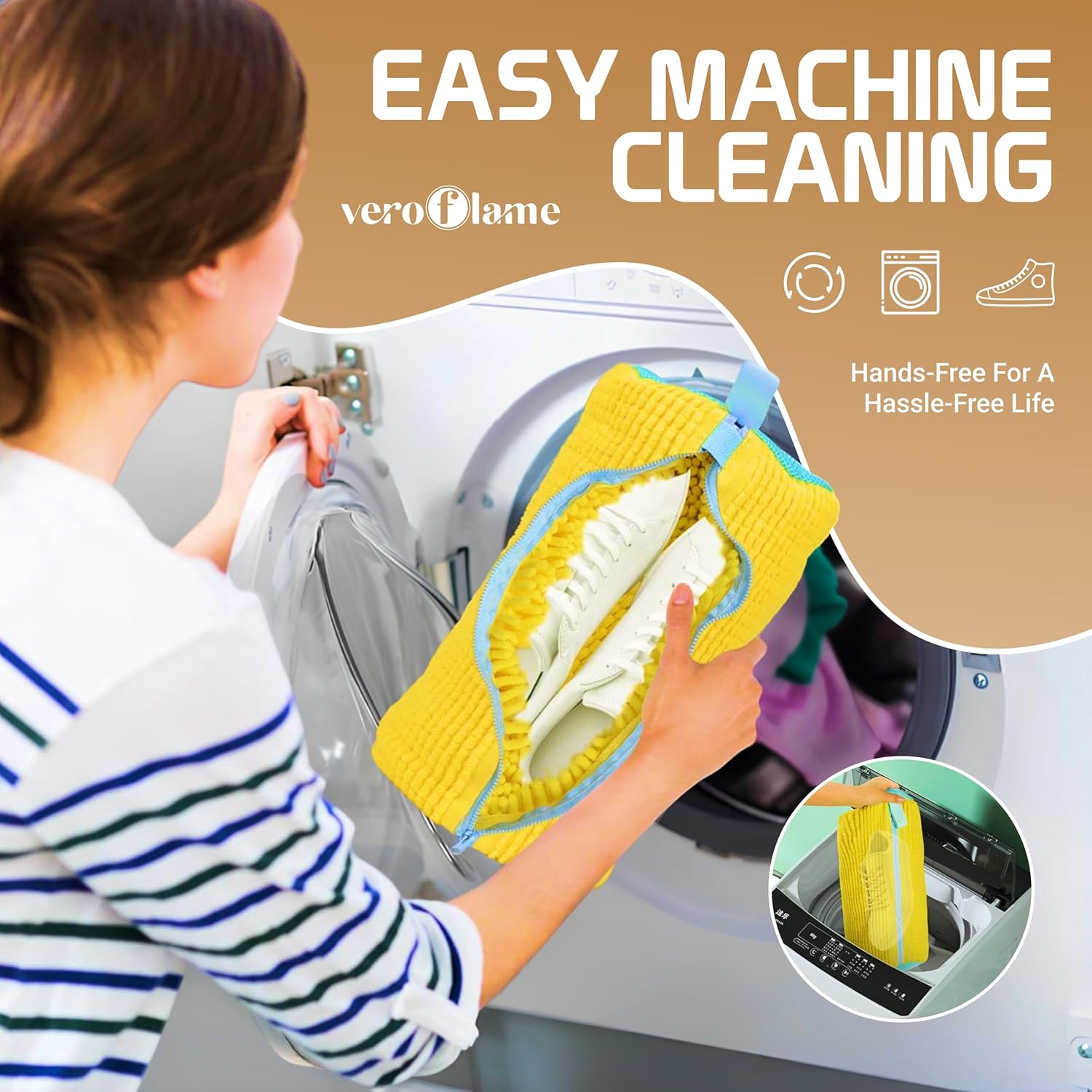 Polyester Shoe Washing Machine Bag with Zipper – Reusable Laundry Shoe Bag for Washer Dryer – 360° Deep Cleaning, Fits All Shoe Sizes, for Sneakers, Socks & Toys – Yellow