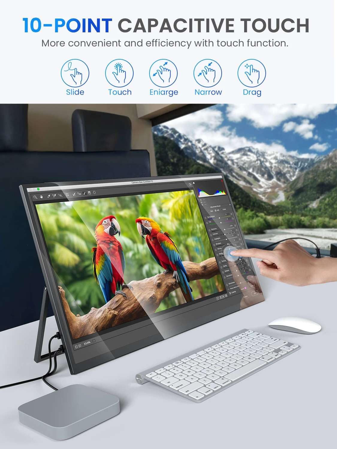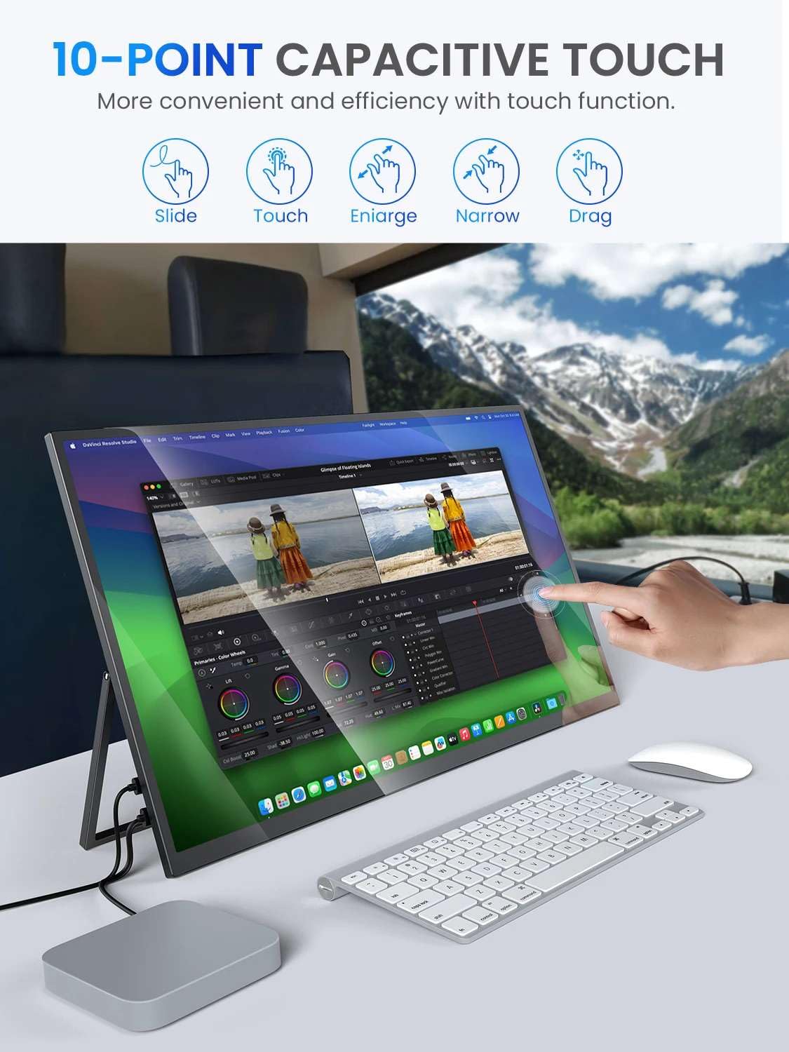 Enhance your viewing experience with this versatile 22-inch 2K touchscreen portable monitor. Ideal for gamers, mobile professionals, and anyone needing an extra screen, this monitor seamlessly integrates into your existing setup. Its vibrant IPS display delivers stunning visuals, while the intuitive touchscreen functionality adds a layer of convenience.