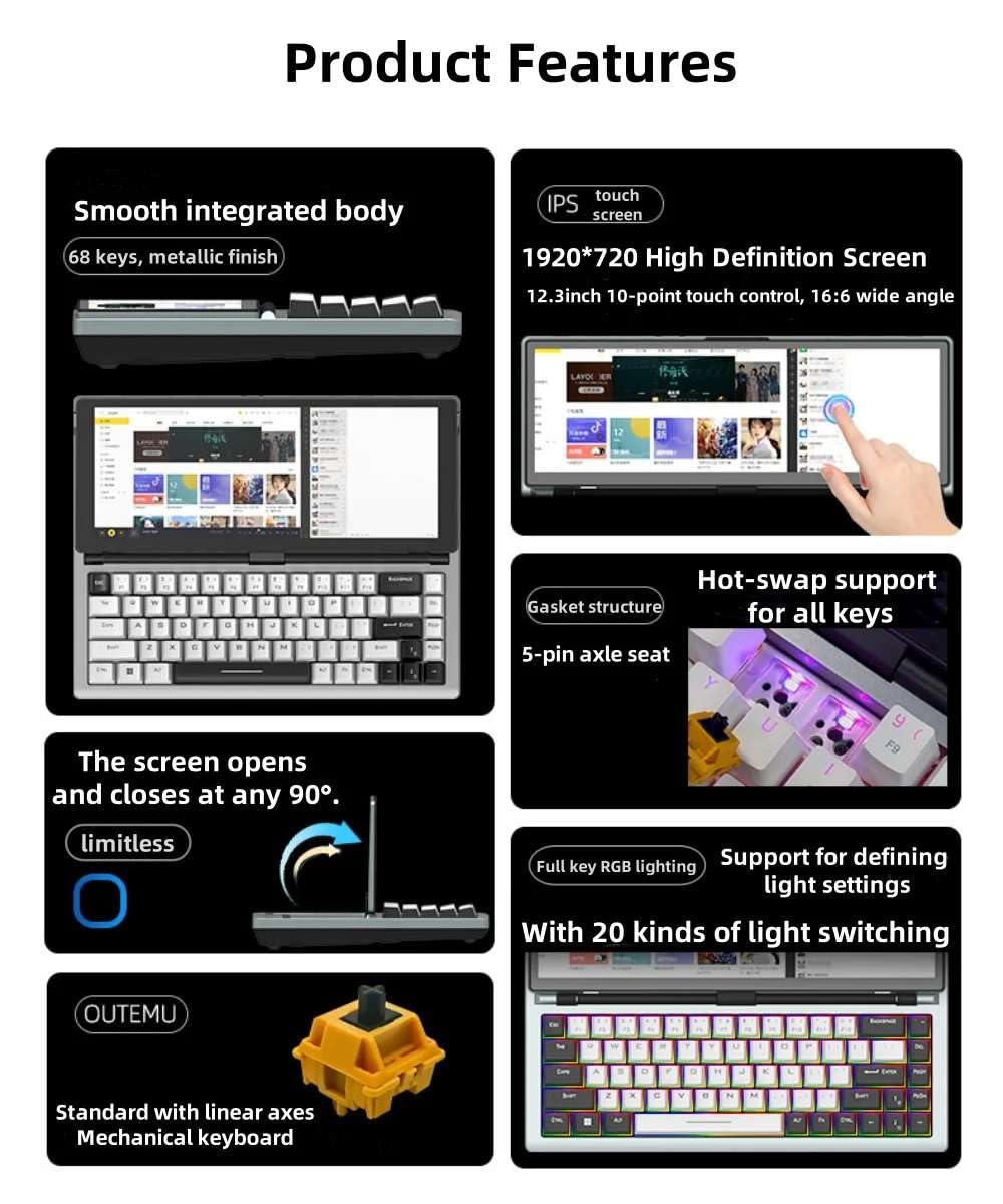 Experience immersive mobile gaming with this 12.3-inch portable gaming monitor. Its vibrant HD IPS panel delivers stunning visuals, while the responsive touchscreen and 90° foldability offer unparalleled convenience and versatility.