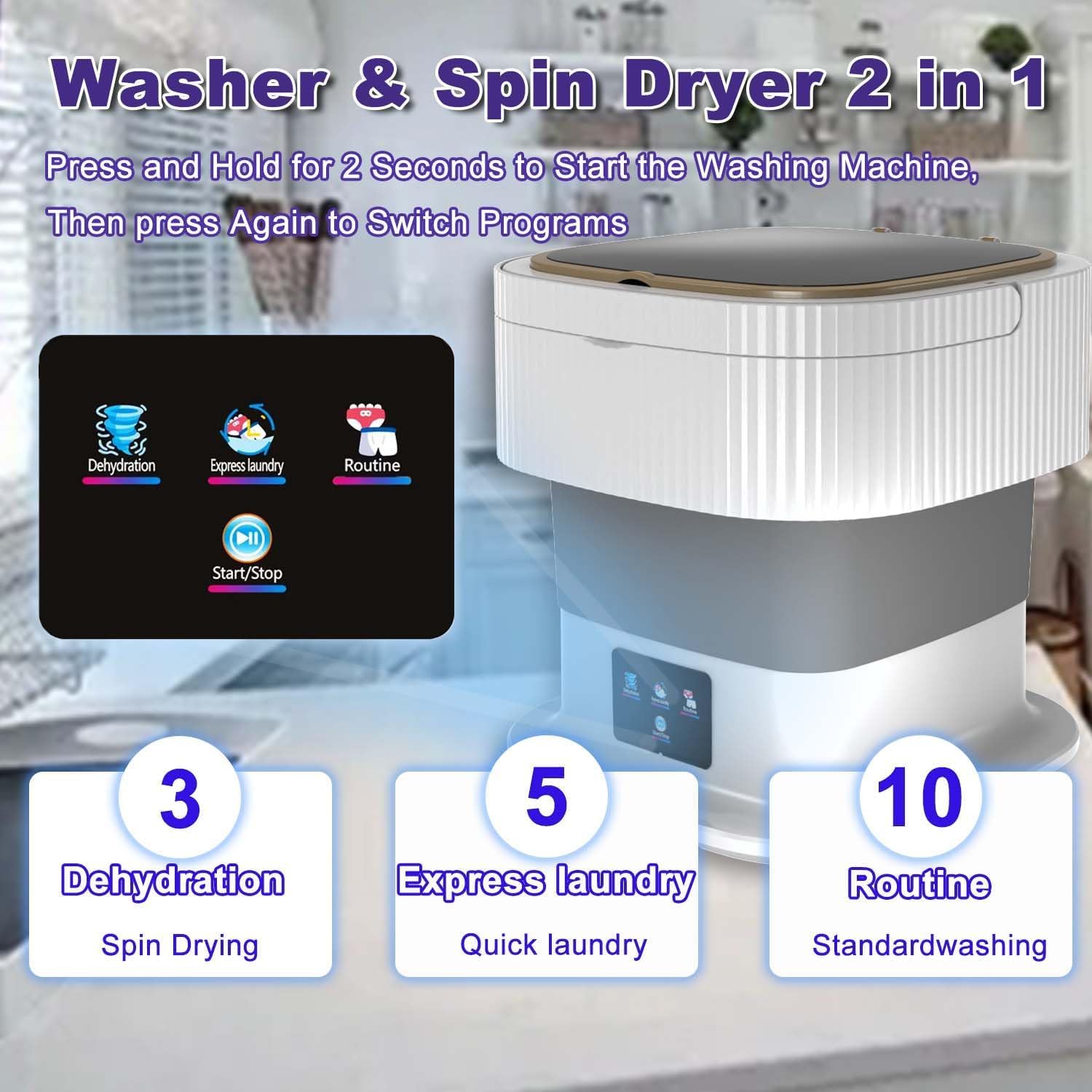✦【Portable & Foldable】 Our new easy wash portable lavadora portatil uses a lightweight design, the entire body can be folded into a small bag, easy to carry, suitable for business trips, travel, camping and other occasions. Although it is small in size, it is fully functional. This fully automatic portable mini washing machine small comes with a handy handle for easy transportation.