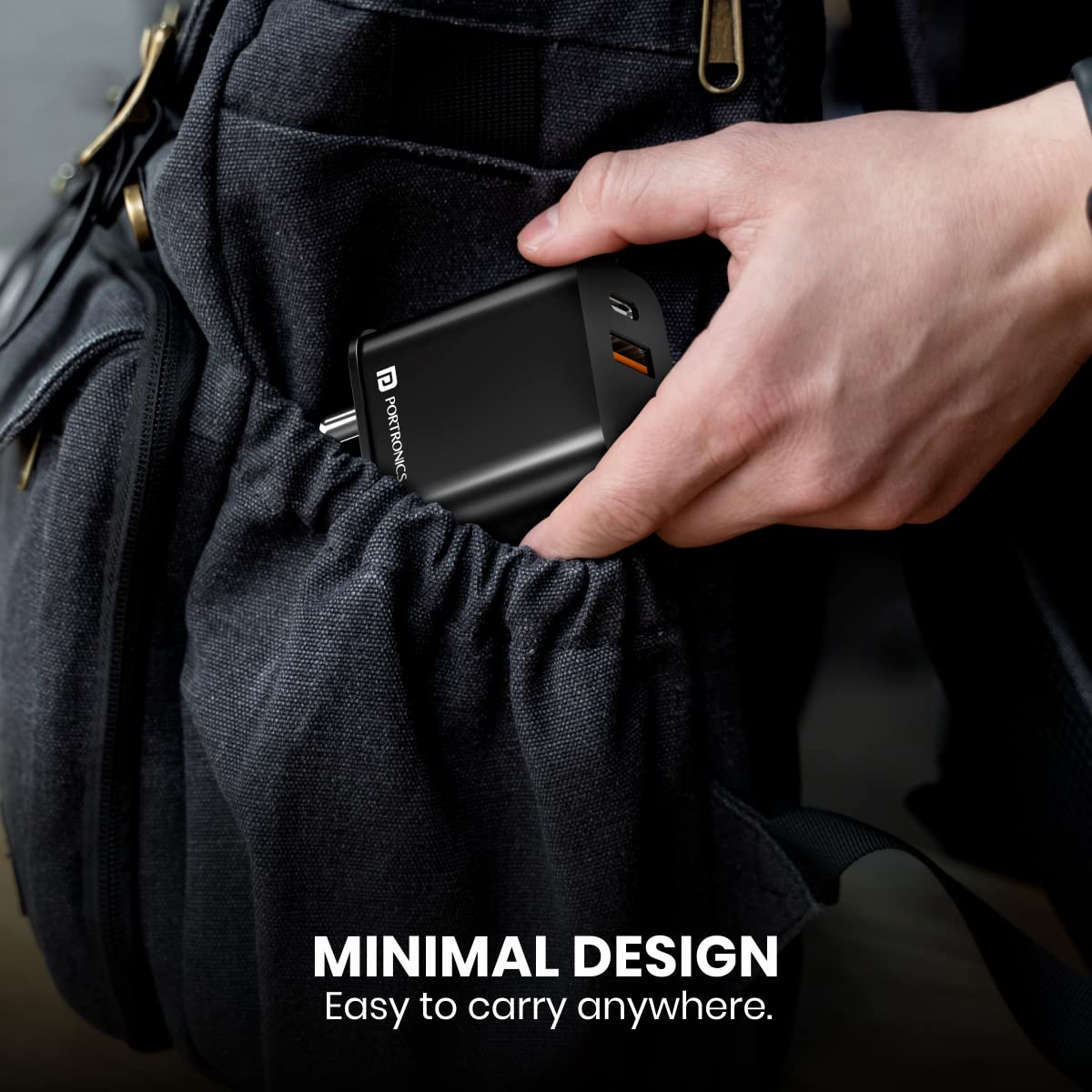 【PORTRONICS ADAPTO 20B】: 20W Dual Port Fast Charging Adapter (Type C PD 3.0 & Mach USB-A) Compatible with Android Smartphones, iPhone 14/ 14 Plus/ 14 Pro/ 14 Pro Max, iPhone 13/13 Pro/13 Pro Max/13 Mini, 12/12 Mini/ 12 Pro Max, iPhone 11 Series With Mach Certified|