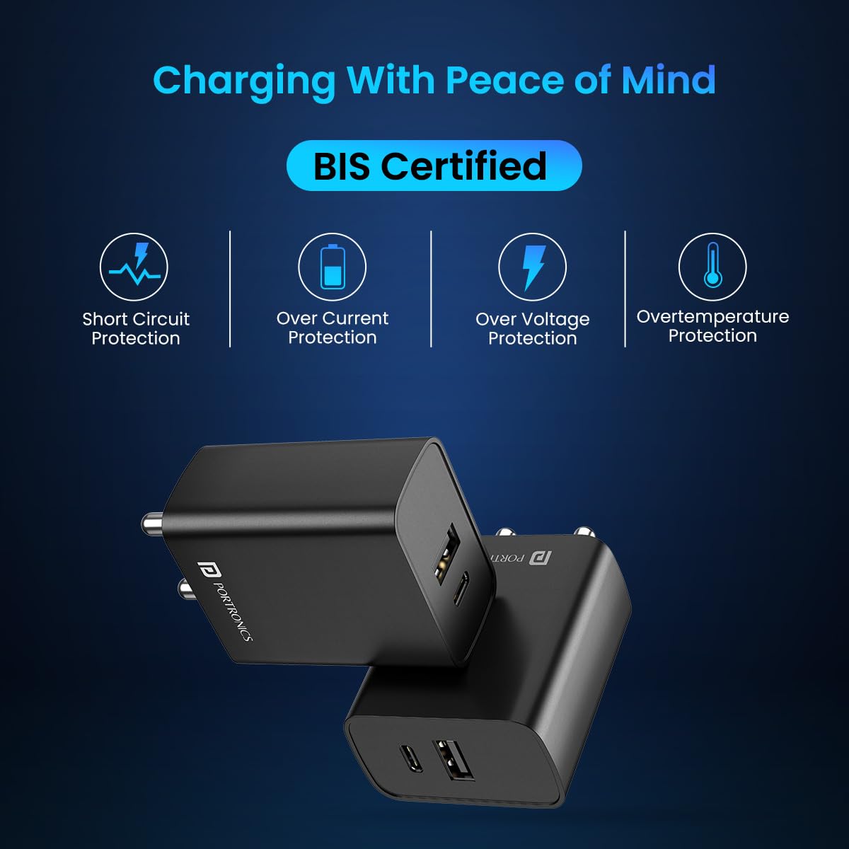 【PPS SAFE】: The Portronics adapter has PPS (Programmable Power Supply) the type C charger modifies voltage and current by feeding maximum power based on a device’s charging status.