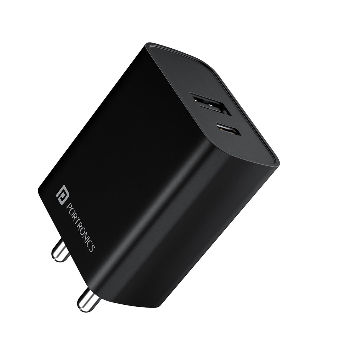 Portronics Adapto 70 33W Fast Charger Adapter with Dual Output (USB + Type C) Supports PPS Charging Via Type C Port, 27W Dash, Warp 27W, Dart, Super Dart 27W(Black)