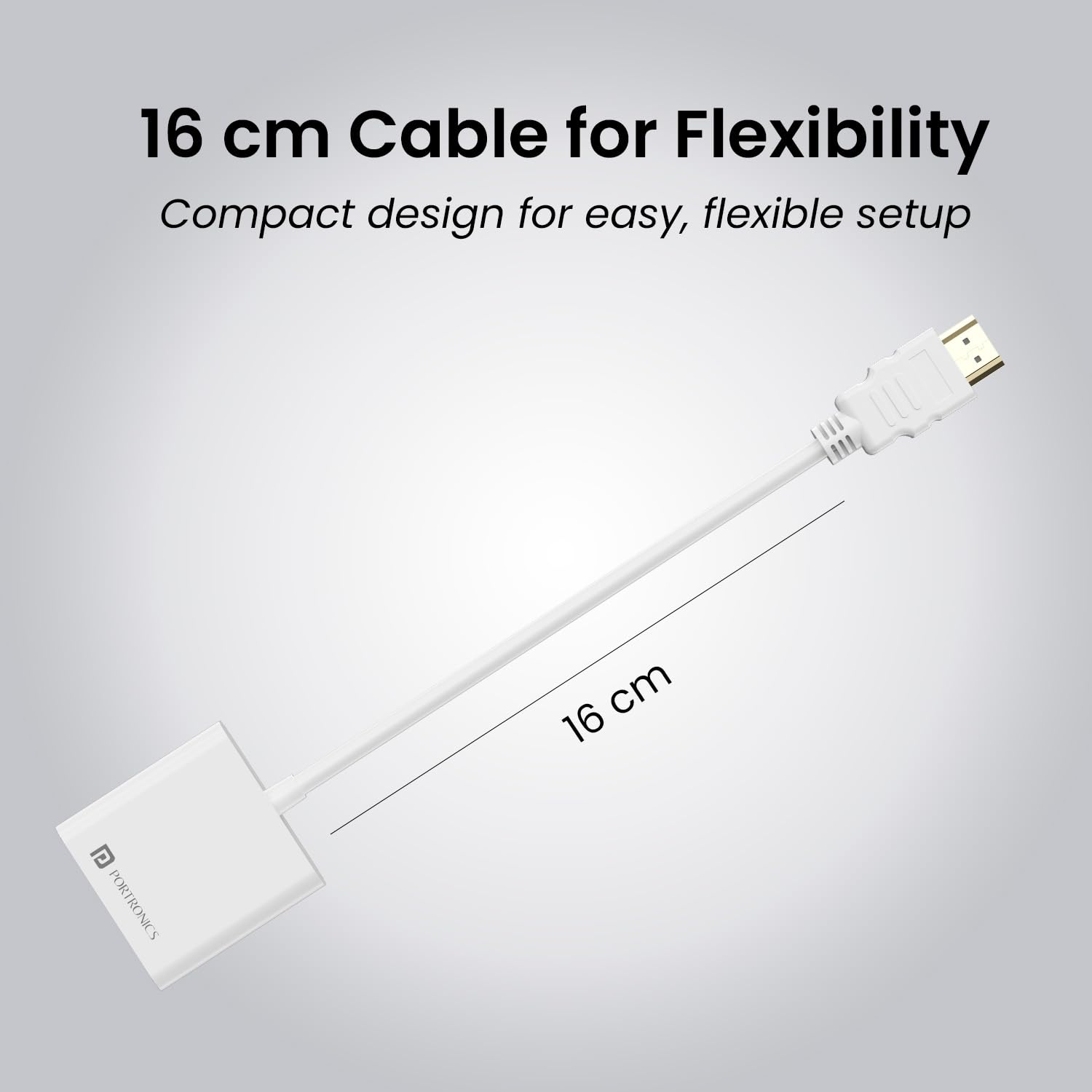 Portronics DigiBridge HDMI to VGA Converter with 1080p Full HD @ 60 Hz Max Resolution, 16 cm Long Cable, Durable Build Material, Compatible with Laptop & Desktop (White)