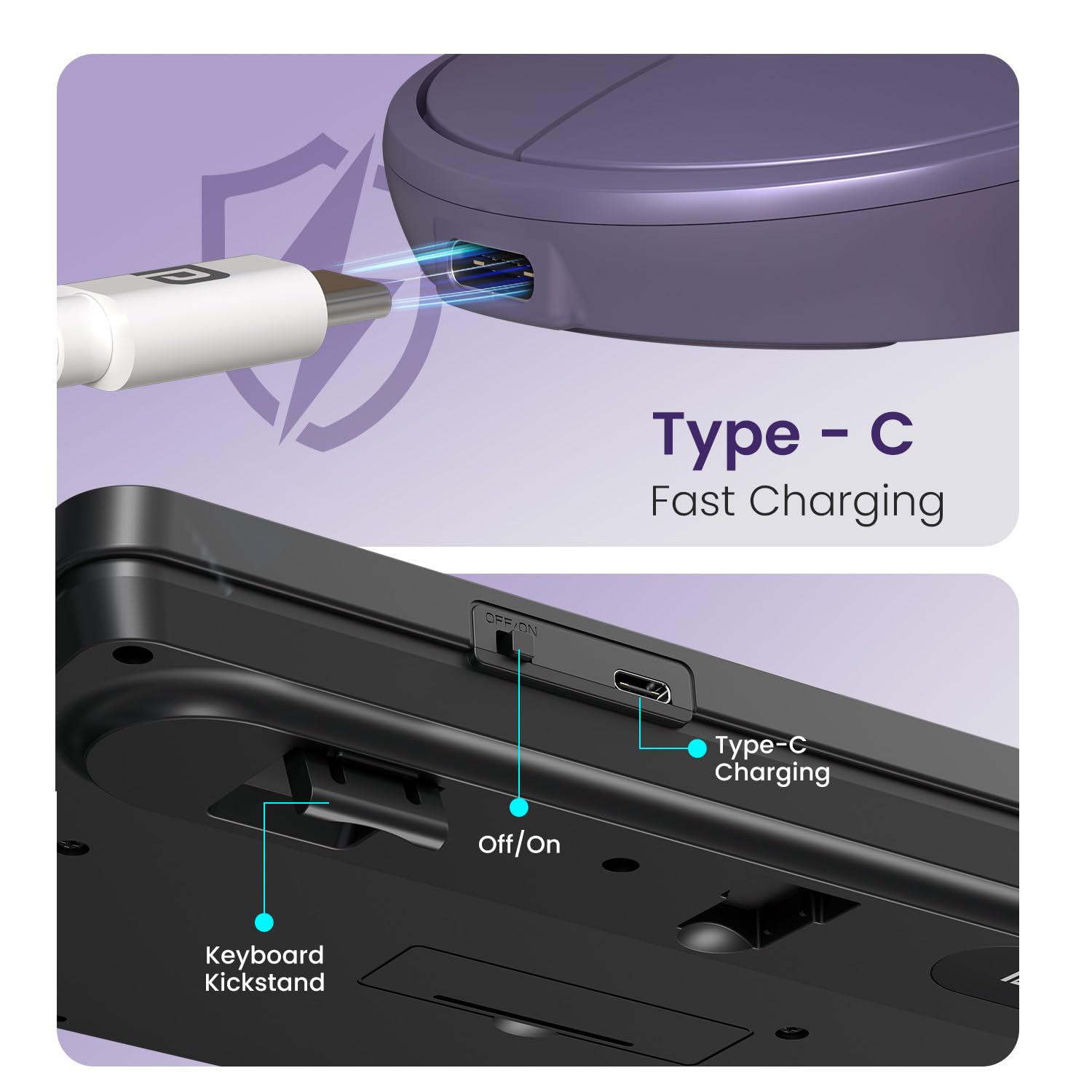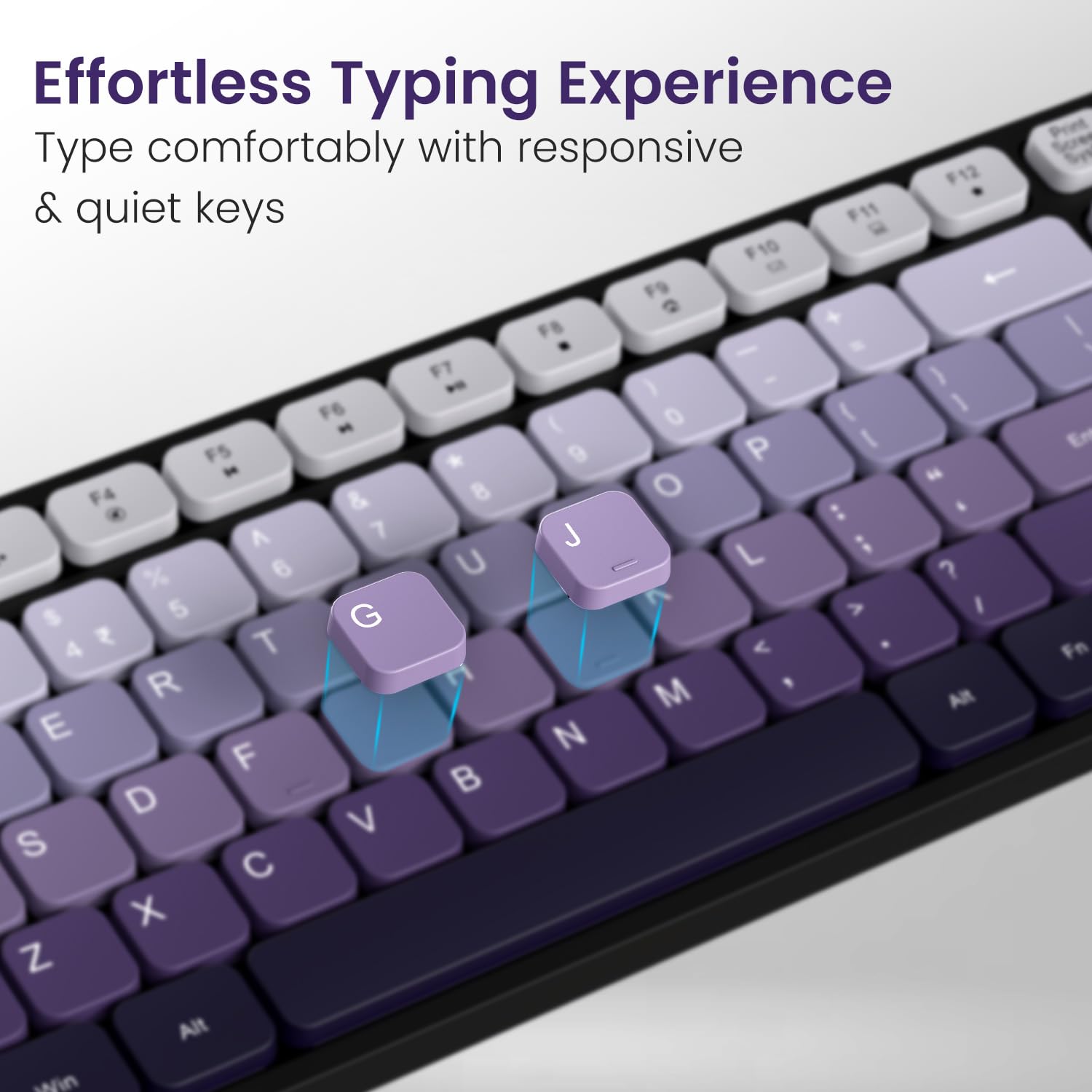 Portronics Key11 Combo Rechargeable Wireless Keyboard and Mouse Set, Bluetooth 5.3&2.4GHz Wireless,Type-C Fast Charging,Gradient Keys, Noiseless Typing, High Precision Mouse, for PC&Laptop(Purple)