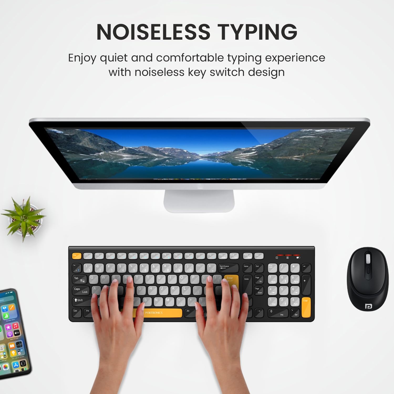 Portronics Key7 Combo Wireless Keyboard & Mouse Set with 2.4 GHz USB Receiver, 10m Working Range, 12 Shortcut Keys, Adjustable DPI, 10 Million Key Life & Click Life for PC, Laptop, Mac (Grey+Orange)