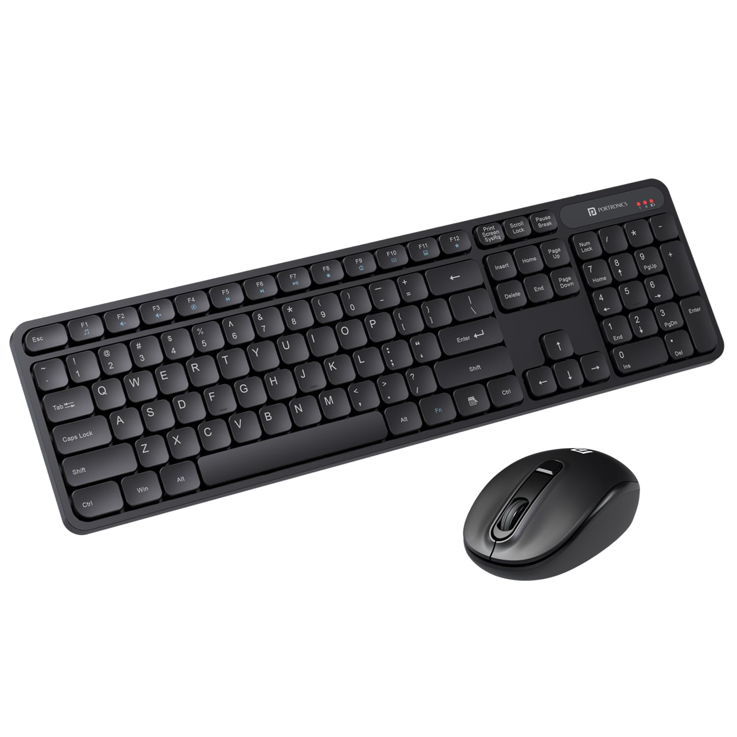 Portronics Key8 Combo Wireless Keyboard and Mouse Set with 2.4 GHz Wireless, Large Keycaps, 104 Keys, Adjustable Mouse Sensitivity, 12 Multimedia Hotkeys, USB Receiver for PC, Laptop, Mac (Black)