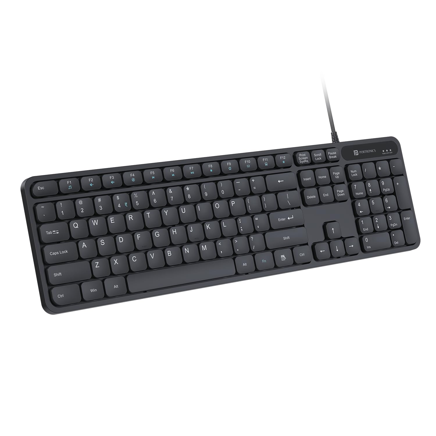 Portronics Ki-Pad 3 USB Wired Keyboard with Large Keycaps, Noise-Free Typing, Fn Multimedia Hotkeys, Full-Size Layout with Num Pad, Ergonomic Design, 1.5m USB Cable, for Laptop, PC, Mac (Black)
