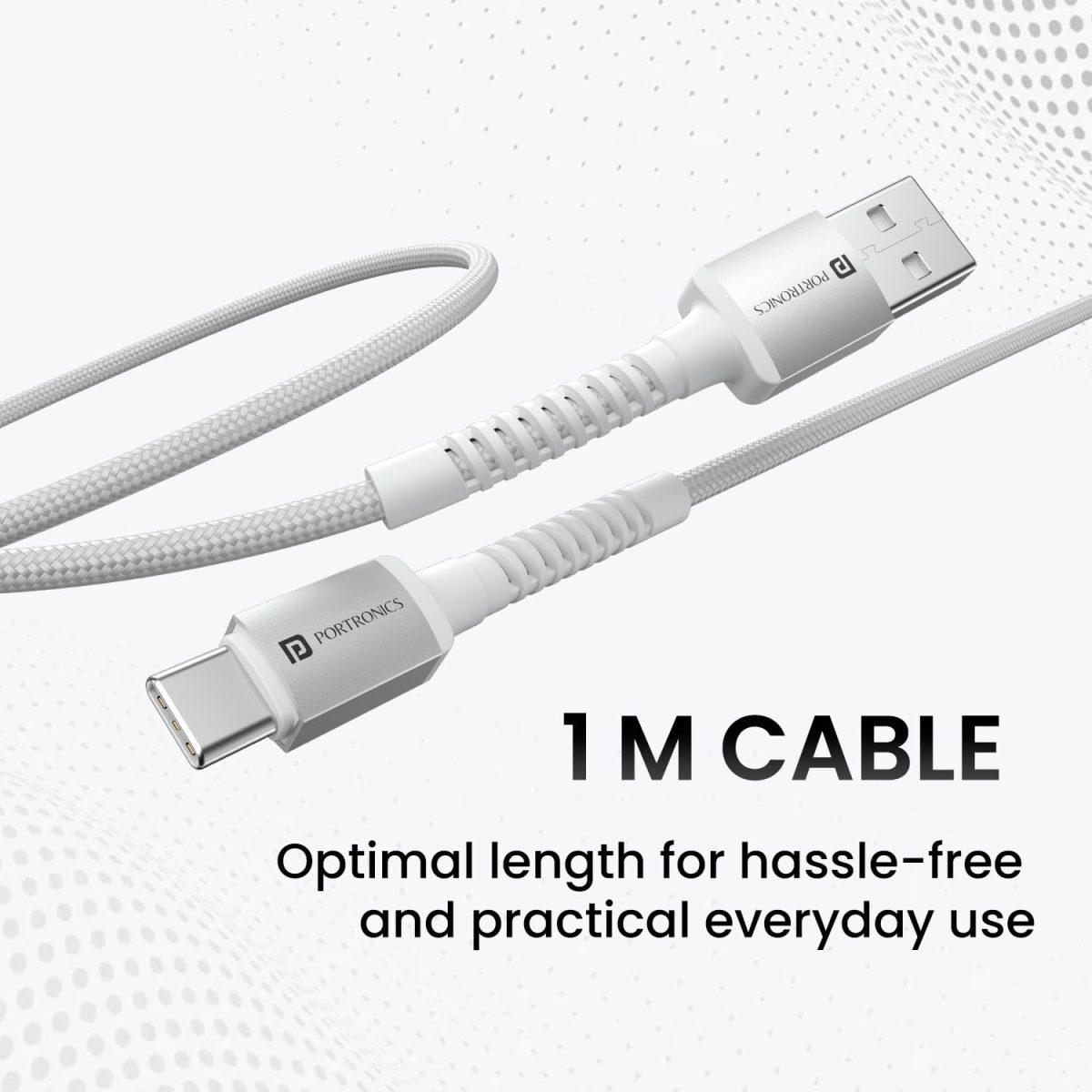 Portronics Konnect X USB to Type C Cable with 3A Output, Fast Charging & Data Transfer, Nylon Braided, Aluminium Alloy Shell, 1M Length compatible with Type C Smartphones(White)