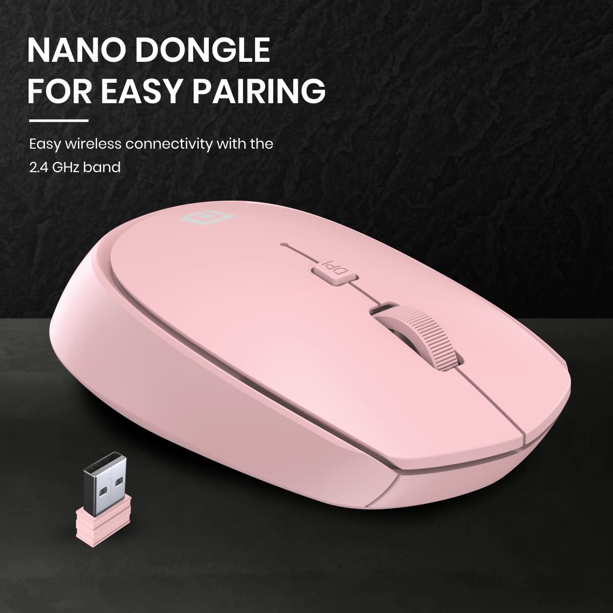 Portronics Toad 23 Wireless Optical Mouse with 2.4GHz, USB Nano Dongle, Optical Orientation, Click Wheel, Adjustable DPI(Pink)
