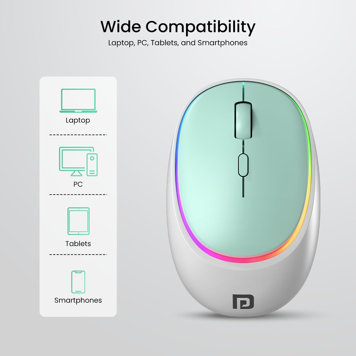 Colorful RGB Lights: The wireless optical mouse comes with Dynamic RGB Lights with 2 modes. You can easily switch between them and enjoy an enhanced working experience.