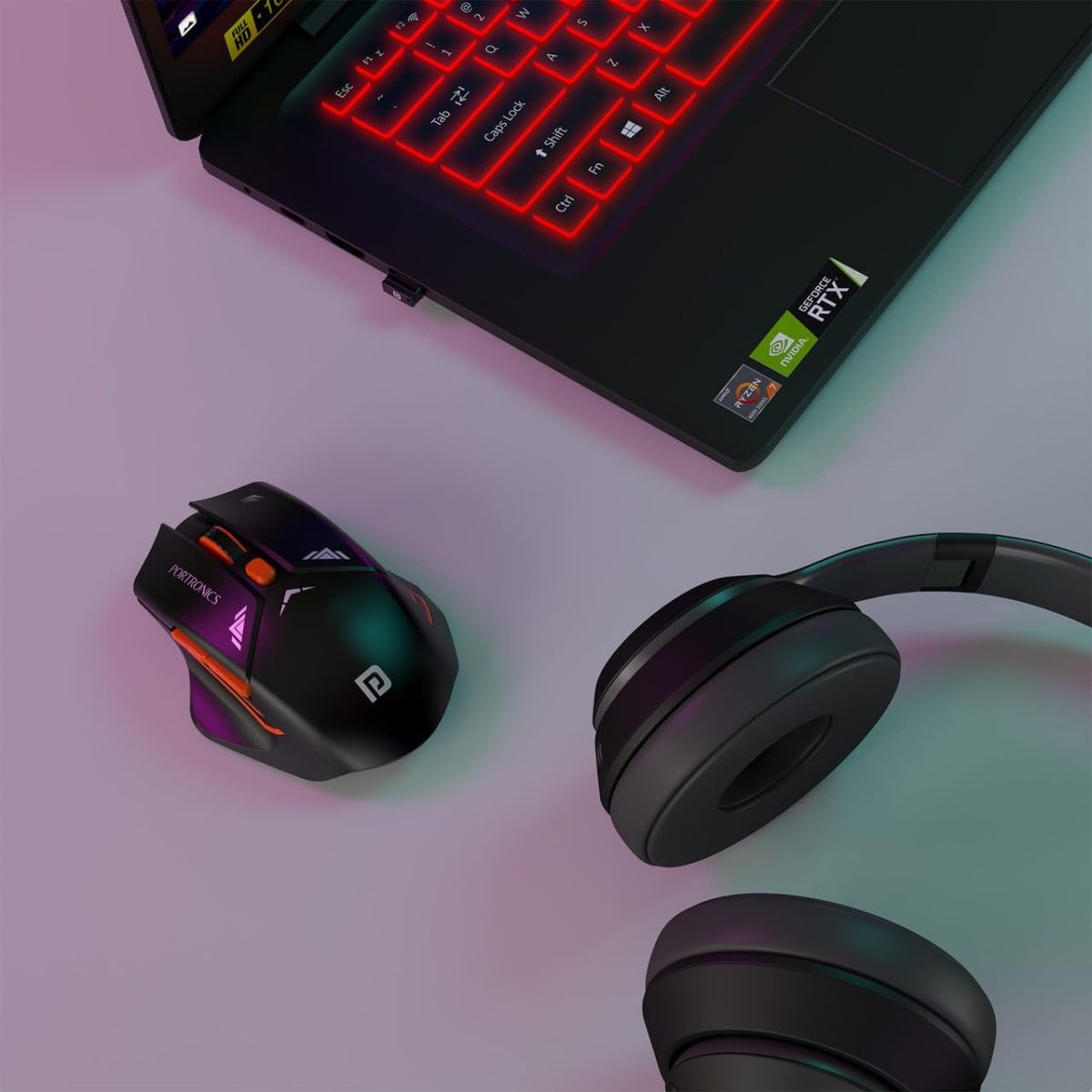 Portronics Vader Pro Wireless Gaming Mouse with 2.4 GHz Receiver, 6 Buttons, Thumb Support, High-Precision Tracking, Ergonomic Comfort, Adjustable Optical DPI for Laptop, PC, Mac
