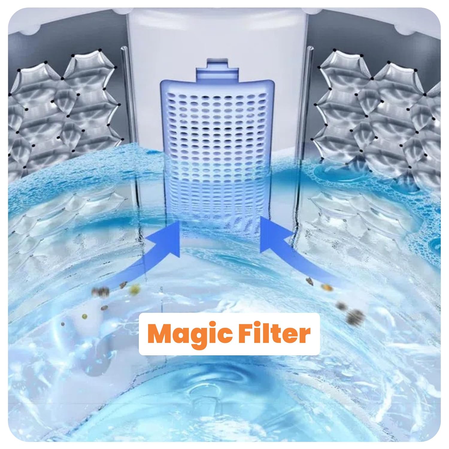 The built-in Magic Filter captures lint, fluff, and particles from your clothes during washing, keeping your laundry cleaner and the machine running smoothly. It’s easy to remove and clean, helping maintain hygiene and extending the life of your washing machine.