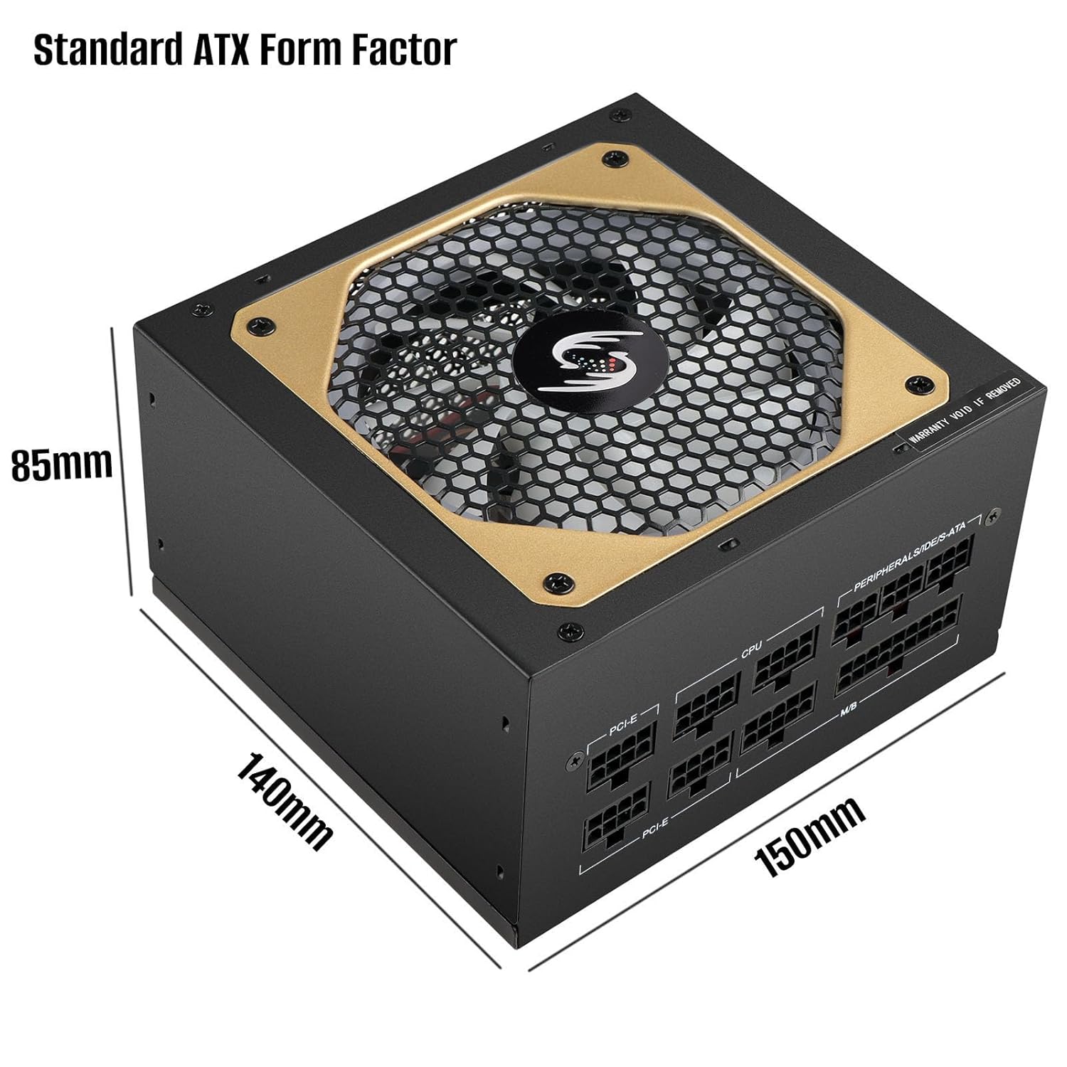 Standard atx form factor, 150 x 140 x 86mm, making it compatible with most atx computer cases. Active PFC type. Heavy duty protections include OVP, UVP, OCP, OPP, SCP and OTP.