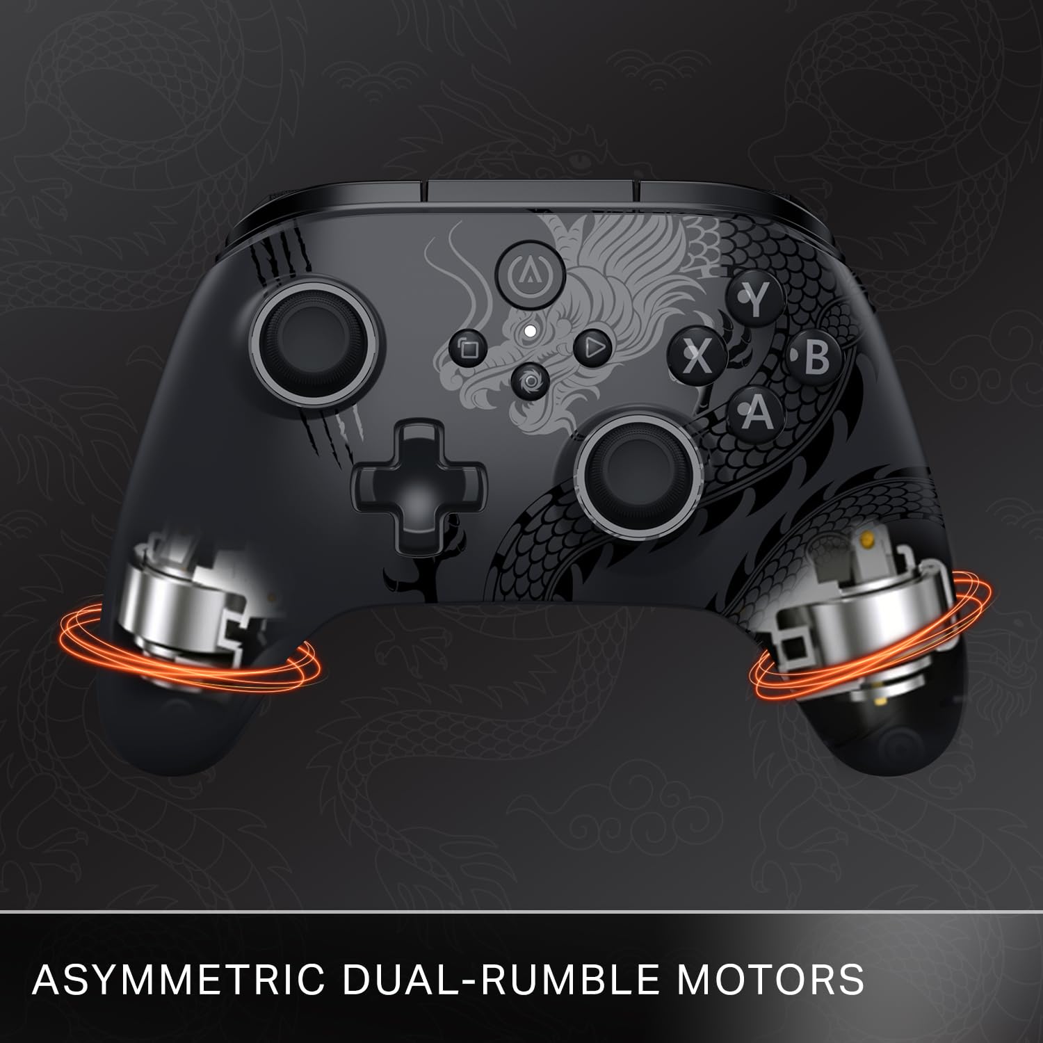 Feel the win with the PowerA Battle Dragon Wireless controller for PC and Cloud gaming. Use low-latency wireless connectivity on PC with included 2.4GHz USB adaptor or enjoy the flexibility of Bluetooth to game on many compatible devices such as Android mobile phones and tablets, and Smart TVs. Hall Effects triggers and thumb sticks add precision and reliability to your game. Gain an edge with high-performance features like 3-way trigger locks, 4 mappable Advanced Gaming Buttons, and a programmable Turbo Button. Get immersed with dual-rumble motors providing tactile feedback and enjoy ergonomically designed textured grips keeping you comfortable for long gaming sessions. This feature packed controller also includes a rechargeable battery and app support to fine-tune your controller settings.