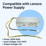 POWERASH 180W Power Supply Adapter for Desktop Business PC Computer with Input Voltage 100-240V and Output Voltage 12V – PSU Replacement for Lenovo Thinkcentre & ideapad Models for Home Office Use