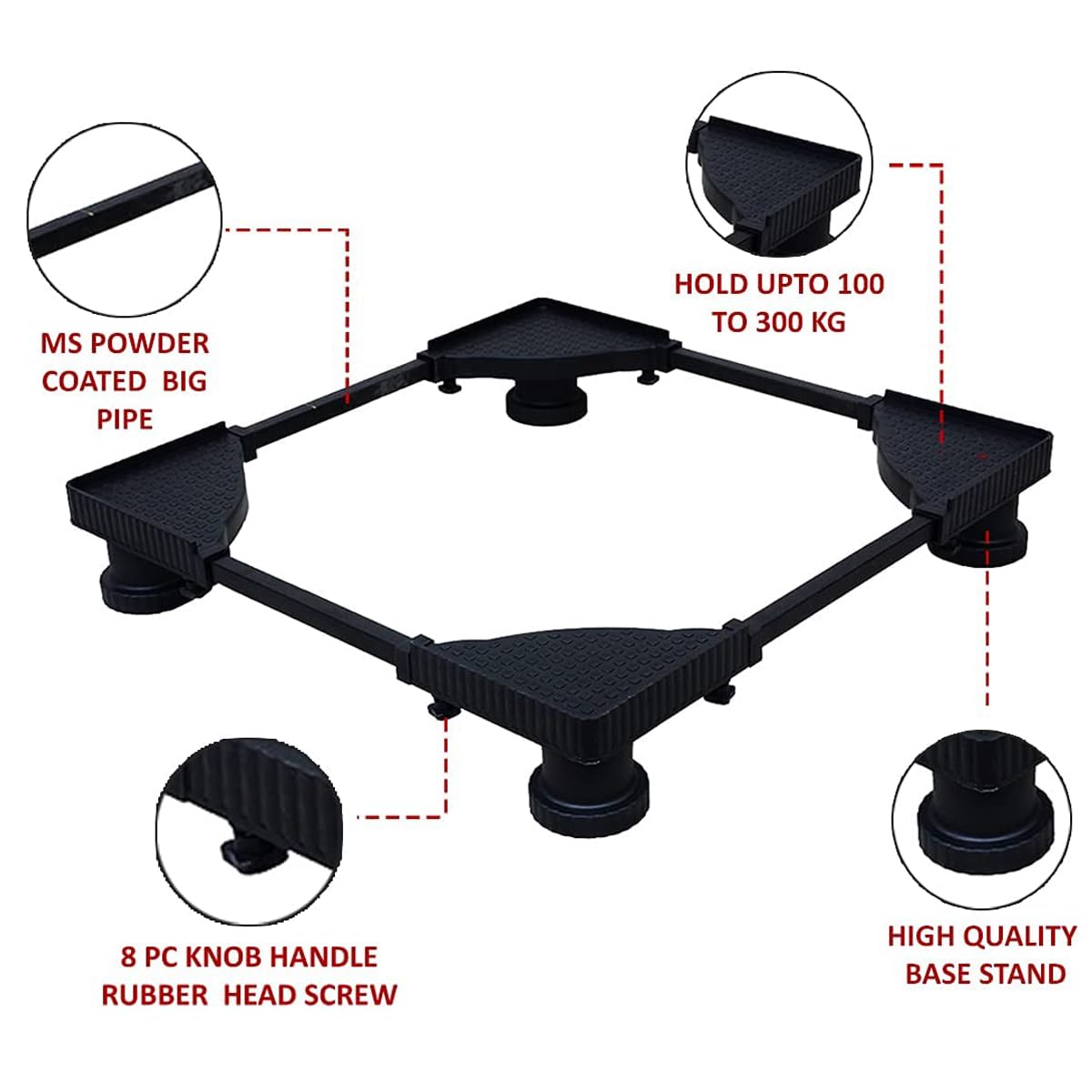 Be the first to review “Premium Adjustable Top & Front Load Washing Machine Stand | Top & Front Load Washing Machine/Dishwashers/Refrigerators Stand (Min:17″x 17″, Max: 26″x26″)”