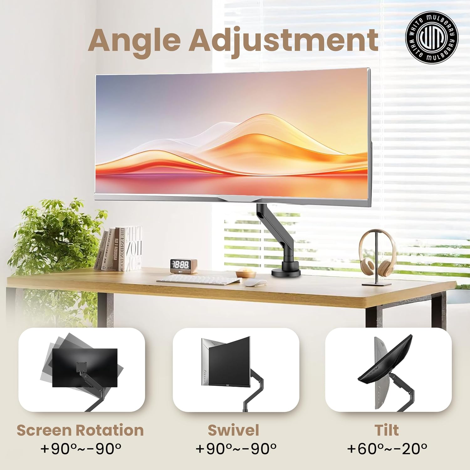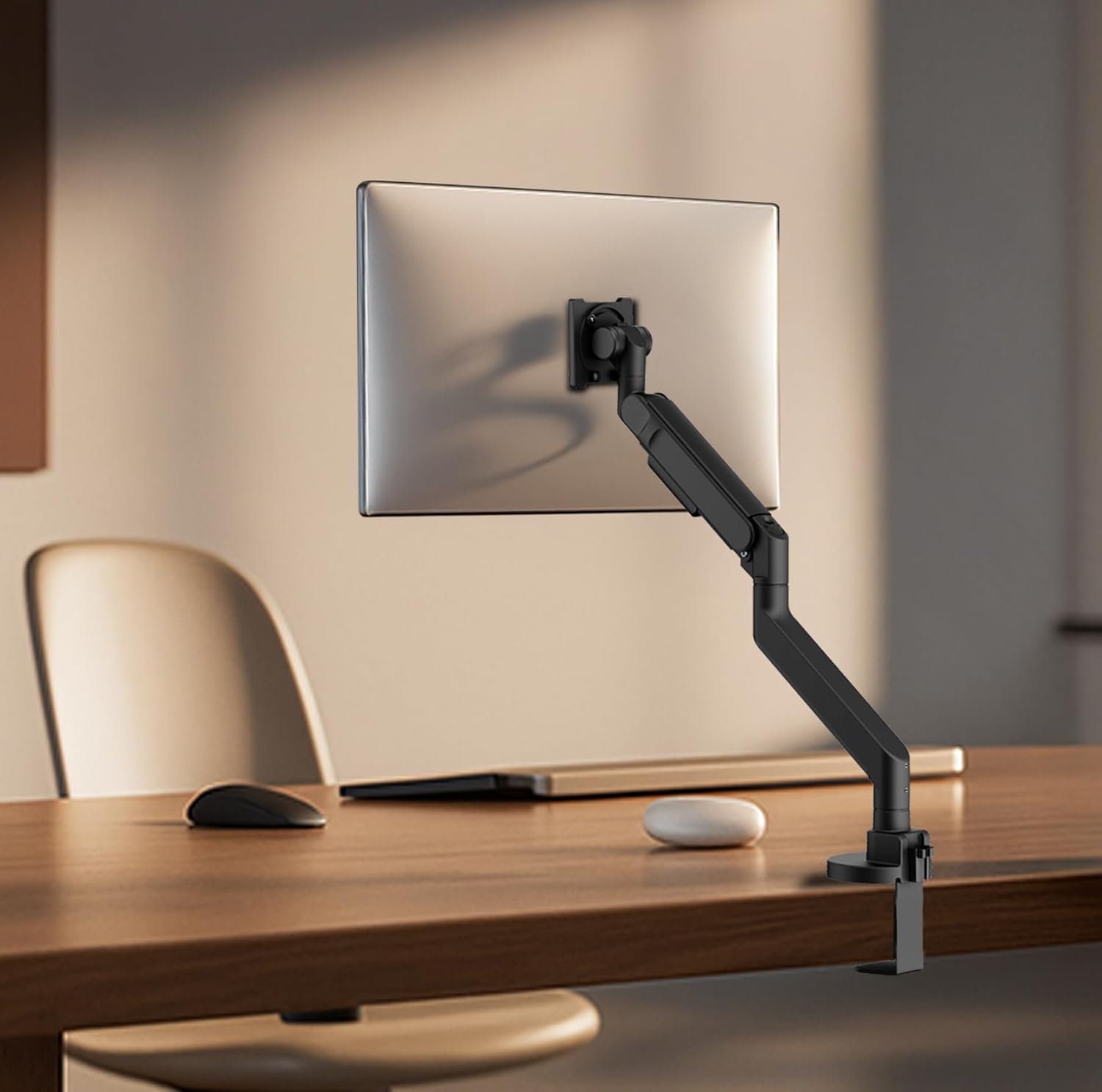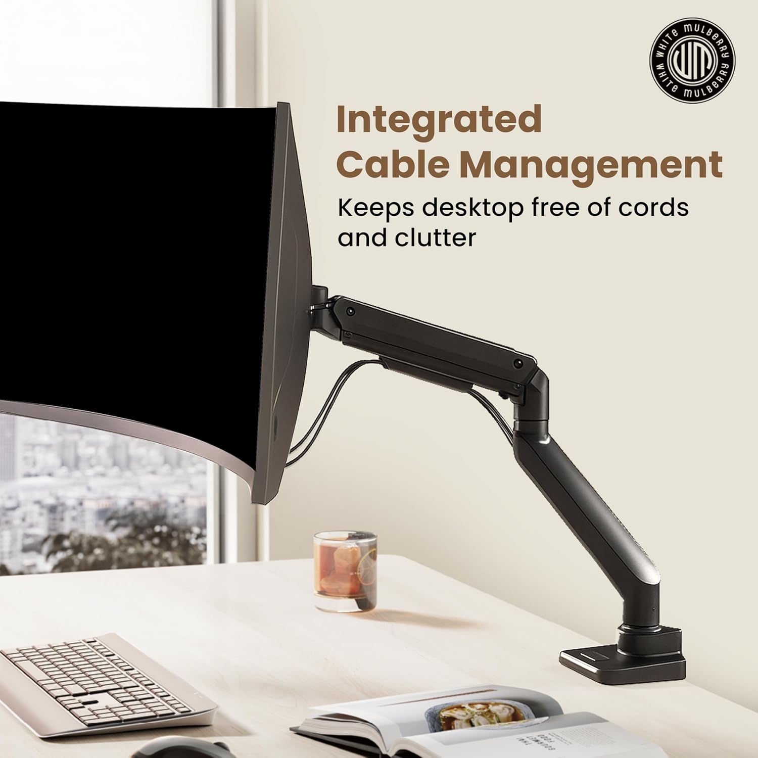 Ergonomic Gas-Spring Design – Smooth, height-adjustable arm with integrated cable management channels keeps your workspace organized and comfortable.