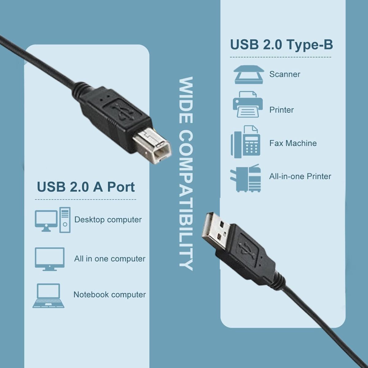 ✅ Compatible with All Major Brands – Perfect for use with HP, Canon, Epson, Brother, and other USB 2.0 printer-enabled devices.