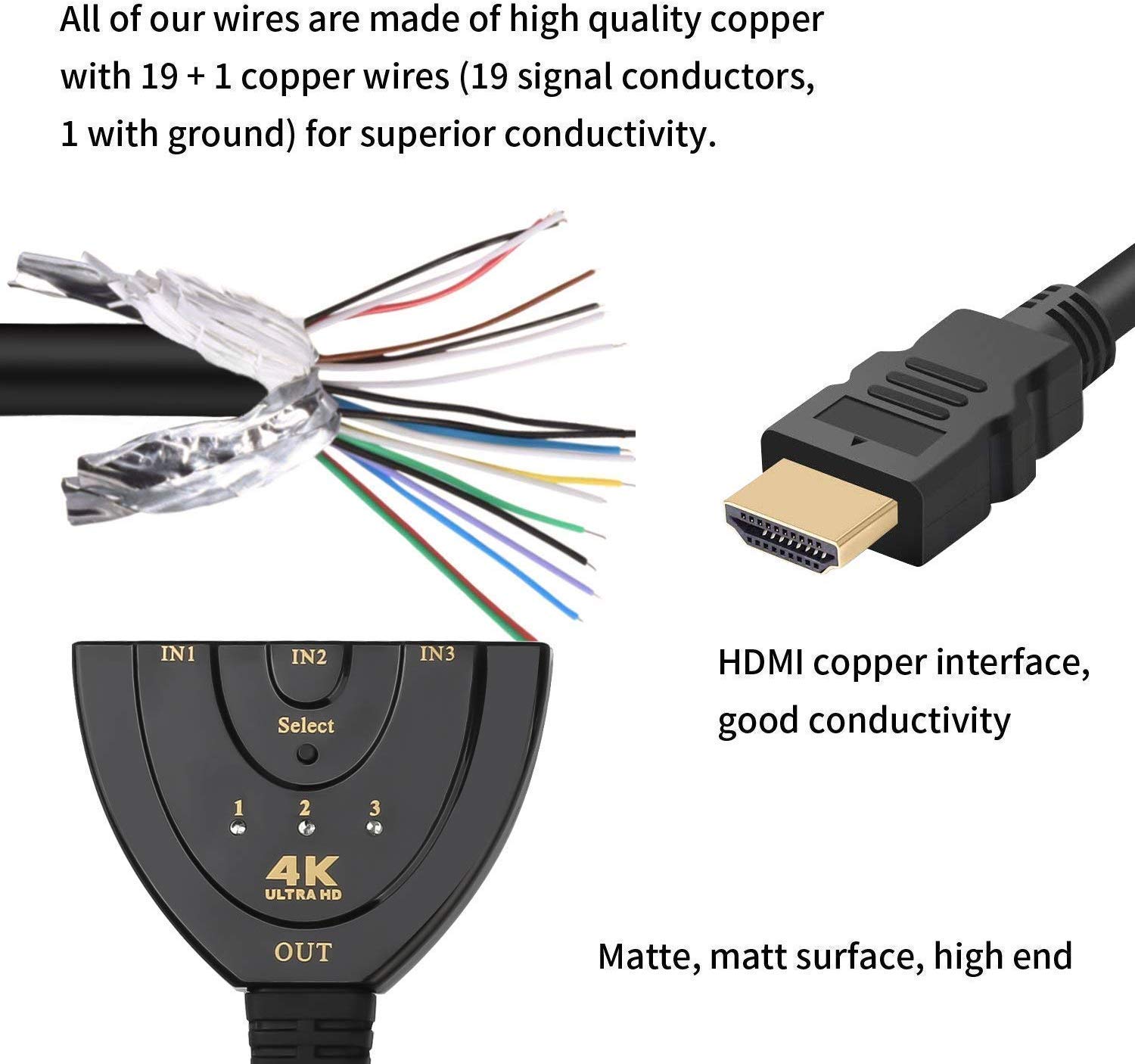 1.The 3×1 HDMI Manual Pigtail Switch has the key-press-switching function.2.It allows you to connect 3 HDMI sources to 1 HDMI sink such as HDTV, monitor or Projector. It supports 3D devices, Full HD 1080p and 4K X 2K.3.No extra power cable is needed to make this switch work.4.As long as the connected devices supply sufficient power, the HDMI switch is capable to automatically obtain power from connected sources devices.