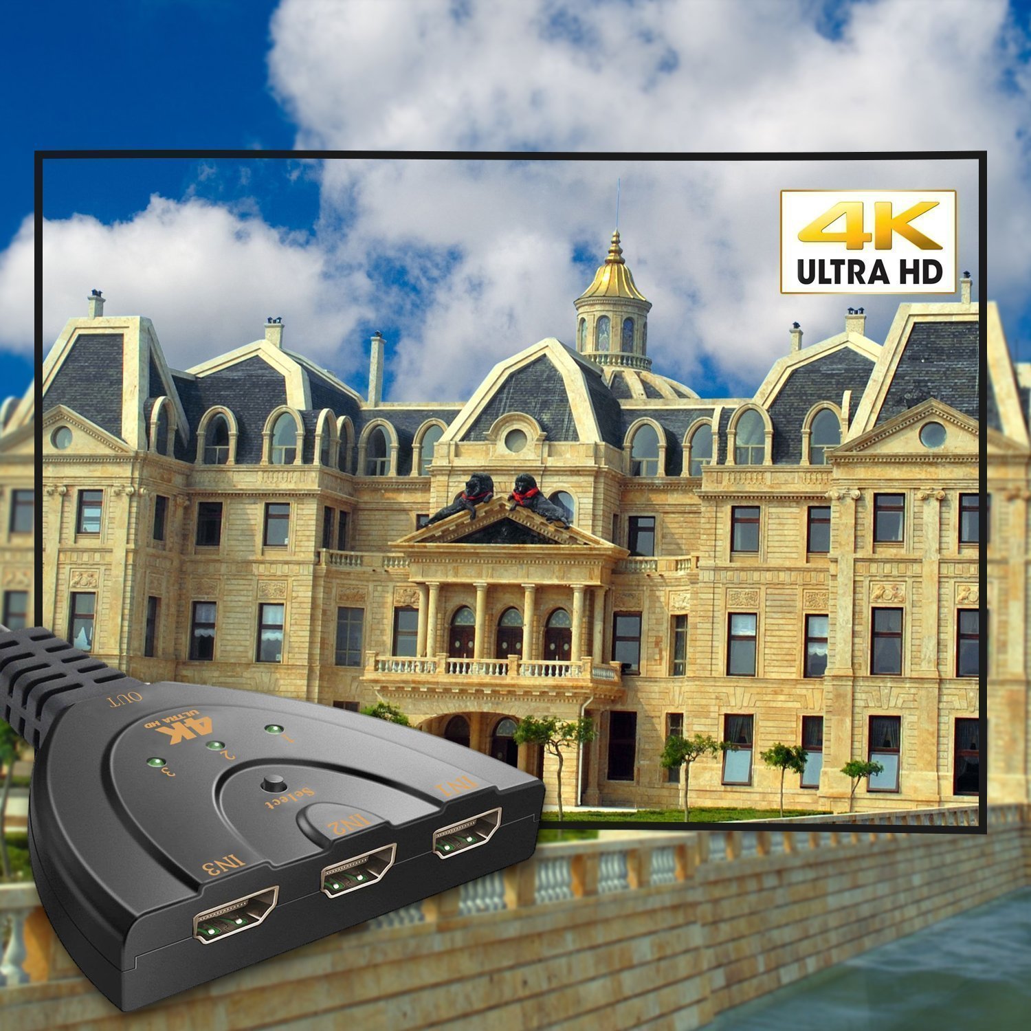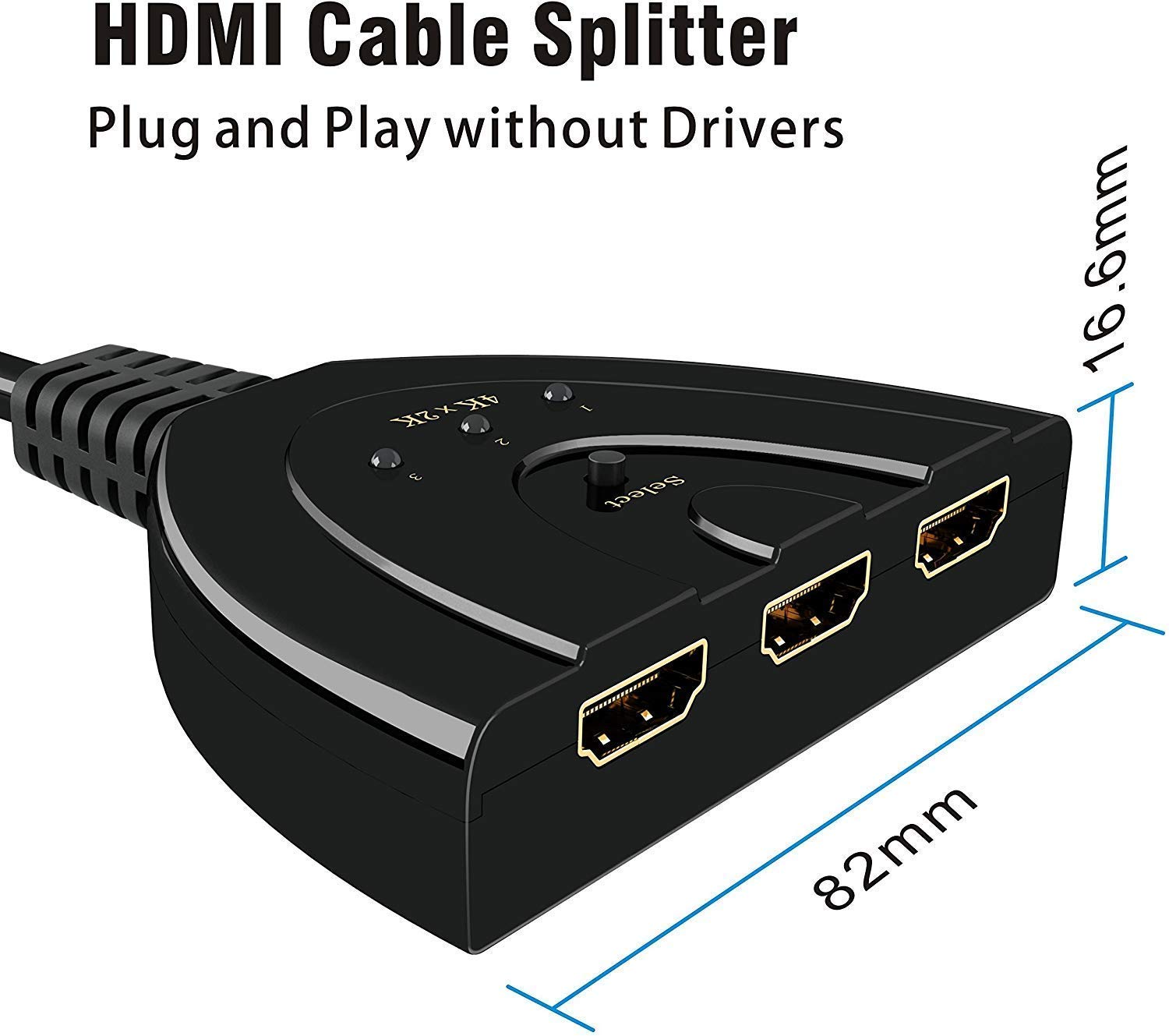 PremiumAV 3-Port HDMI Switch 4K – 1 Input to 3 Output HDMI Splitter with Built-in Cable for TV, Monitor, Laptop, PS4, PC, Projector – Supports 1080p, HDCP, Auto & Manual Switching