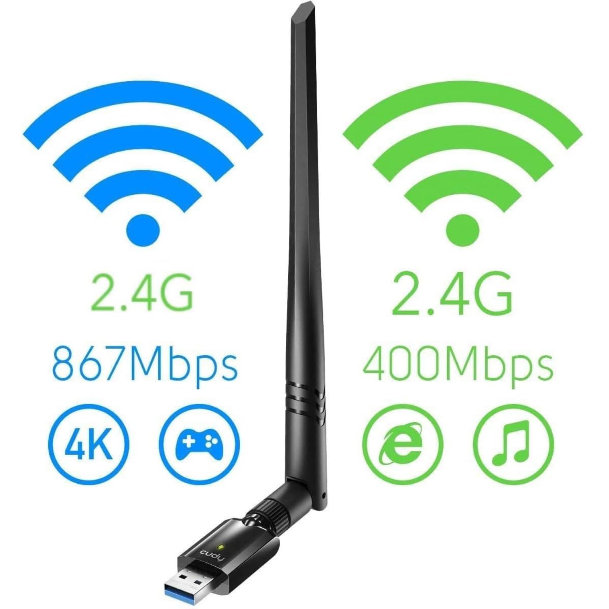 PremiumAV USB WiFi Adapter with Antenna 1200Mbps High-Speed Wireless Network Dongle for Desktop & Laptop Dual Band 2.4GHz USB LAN Receiver, Plug & Play for Windows & Mac OS, Black