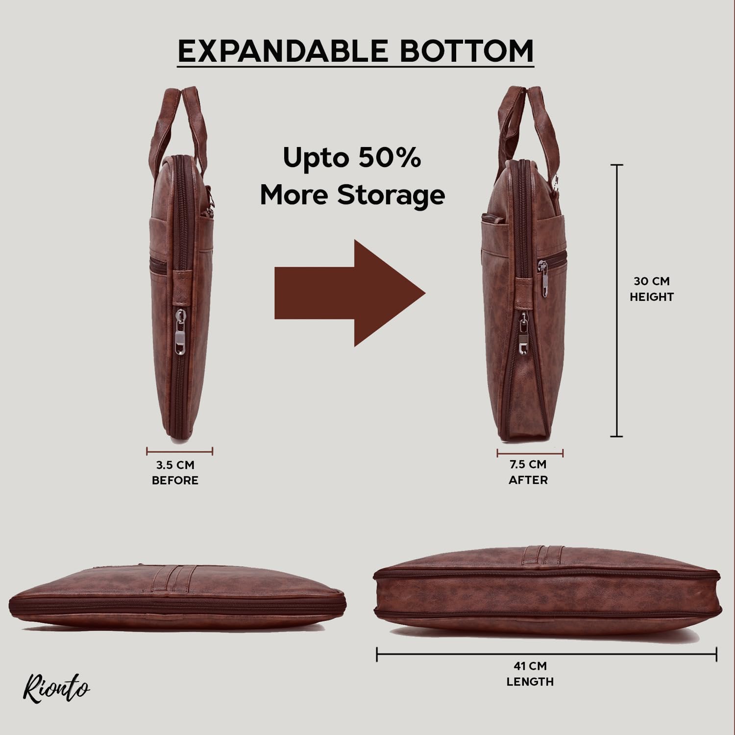 PREMIUM FUNCTIONALITY FOR PROFESSIONALS: Rionto laptop leather bags for men are designed to meet every office and business need bags. From stylish office bags for men, lap top bag for men, and office leather bag for men to durable corporate laptop bag men options, it fits seamlessly into your workday. With space for a 15.6 inch laptop bag, versatile use as a laptop briefcase, sling laptop bag for man, or even a hand bag for men, this all-in-one laptop office bag for men also makes an excellent corporate gift or office gifts for men.
