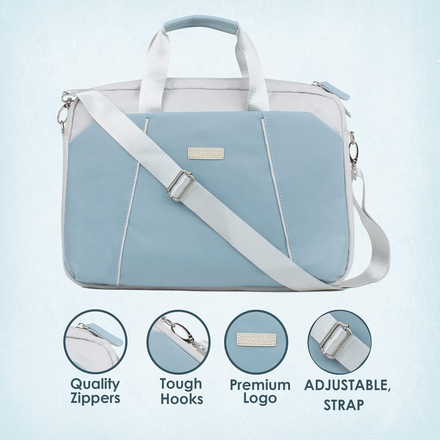 Customers find the laptop bag to be stylish and well-made. They appreciate its space, with one customer noting it has enough pockets to carry the laptop.