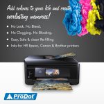ProDot Refill Ink: Delivers accurate printouts in terms of darkness, sharpness and color. Deionized Water and Salt free Dyes ensures vibrant colors and zero damage to print head. Multilevel filtration to control the particle size<1 micron and No leak, No Bleed.