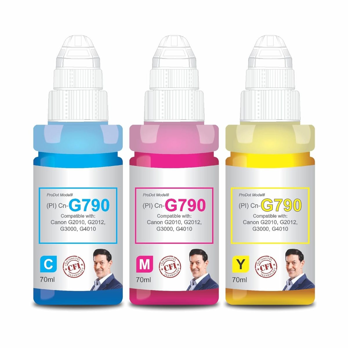 ProDot ProSeries Cn-G790 Inkjet Ink Refill Compatible with Canon Pixma G1000, G1010, G2000, G2010, G3000, G3010, G4000, G4010 Ink Tank Printers (70 ml, C/M/Y)